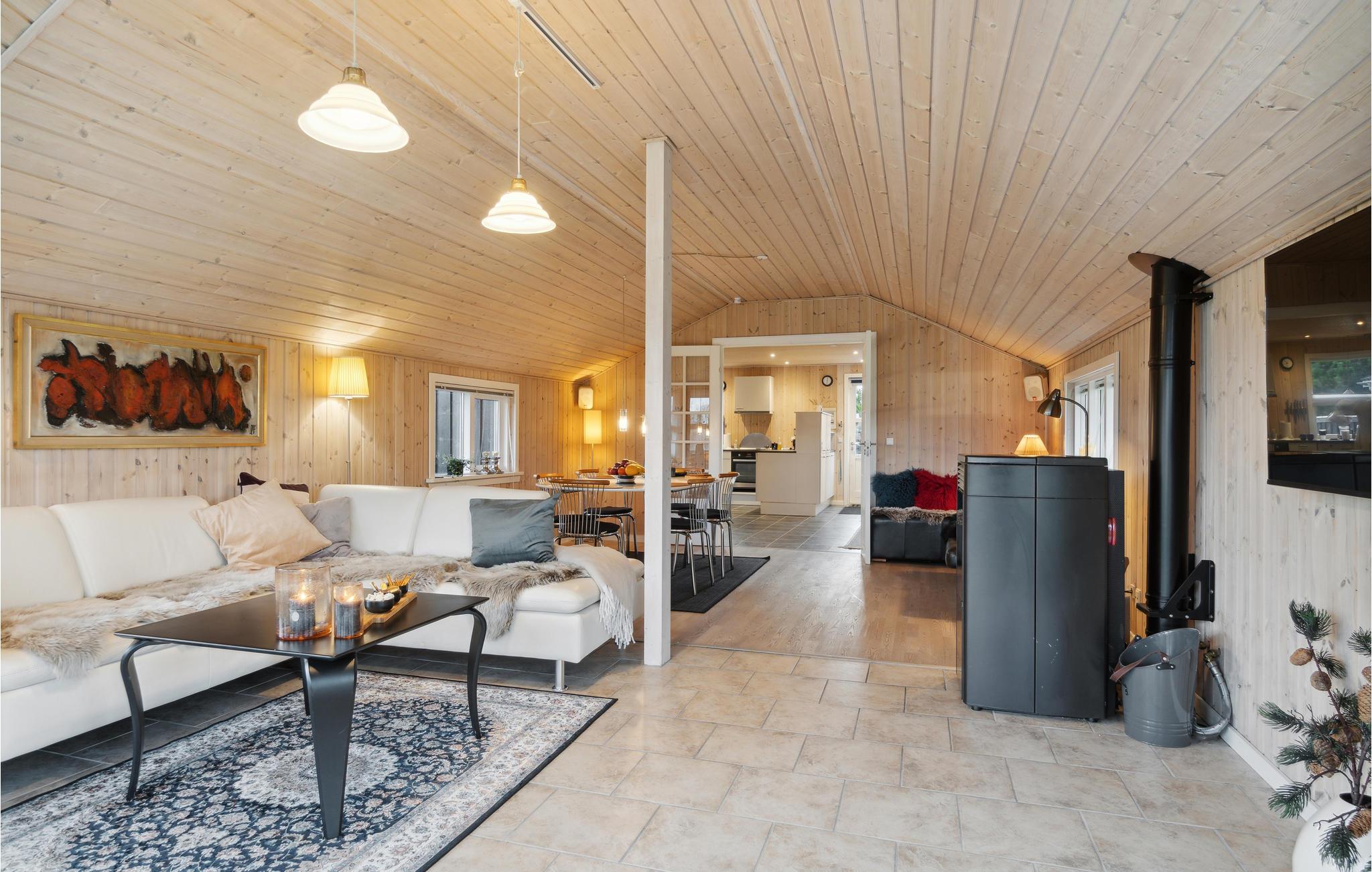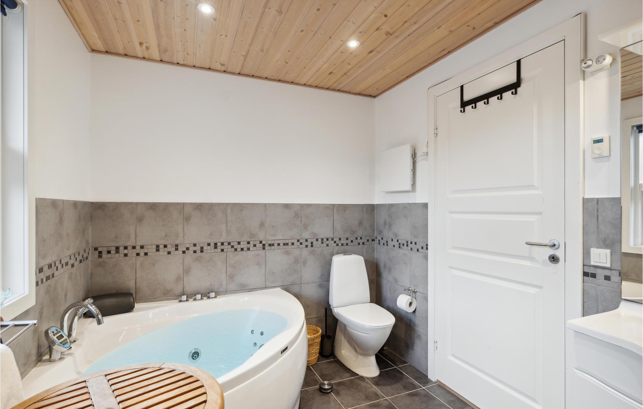 Der er lagt op til en afslappende ferie i dette yderst velholdte feriehus med en skøn, stor grund og gode lege- og aktivitetsmuligheder for hele familien. Den dejlige stue skaber en varm og hjemlig atmosfære med sine træelementer og brændeovn. Her kan I føle jer hjemme og nyde en masse familiehygge, og så kan I også tage et bad i boblebadet og bare koble helt af.