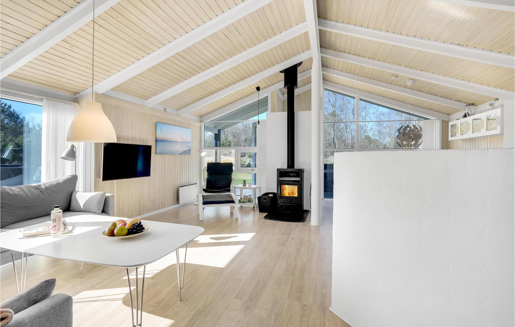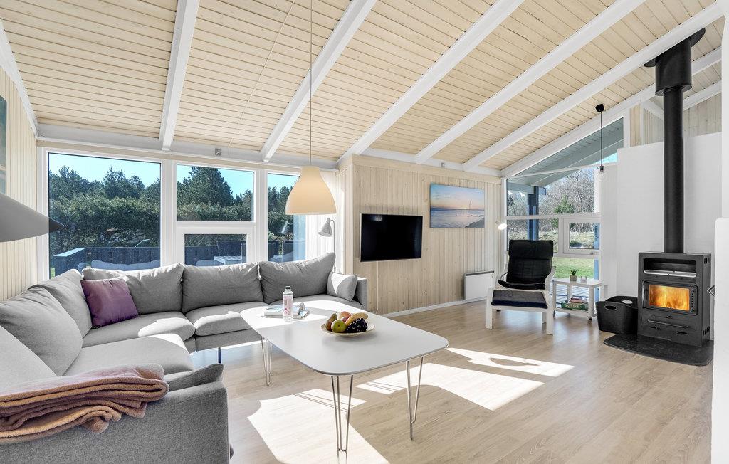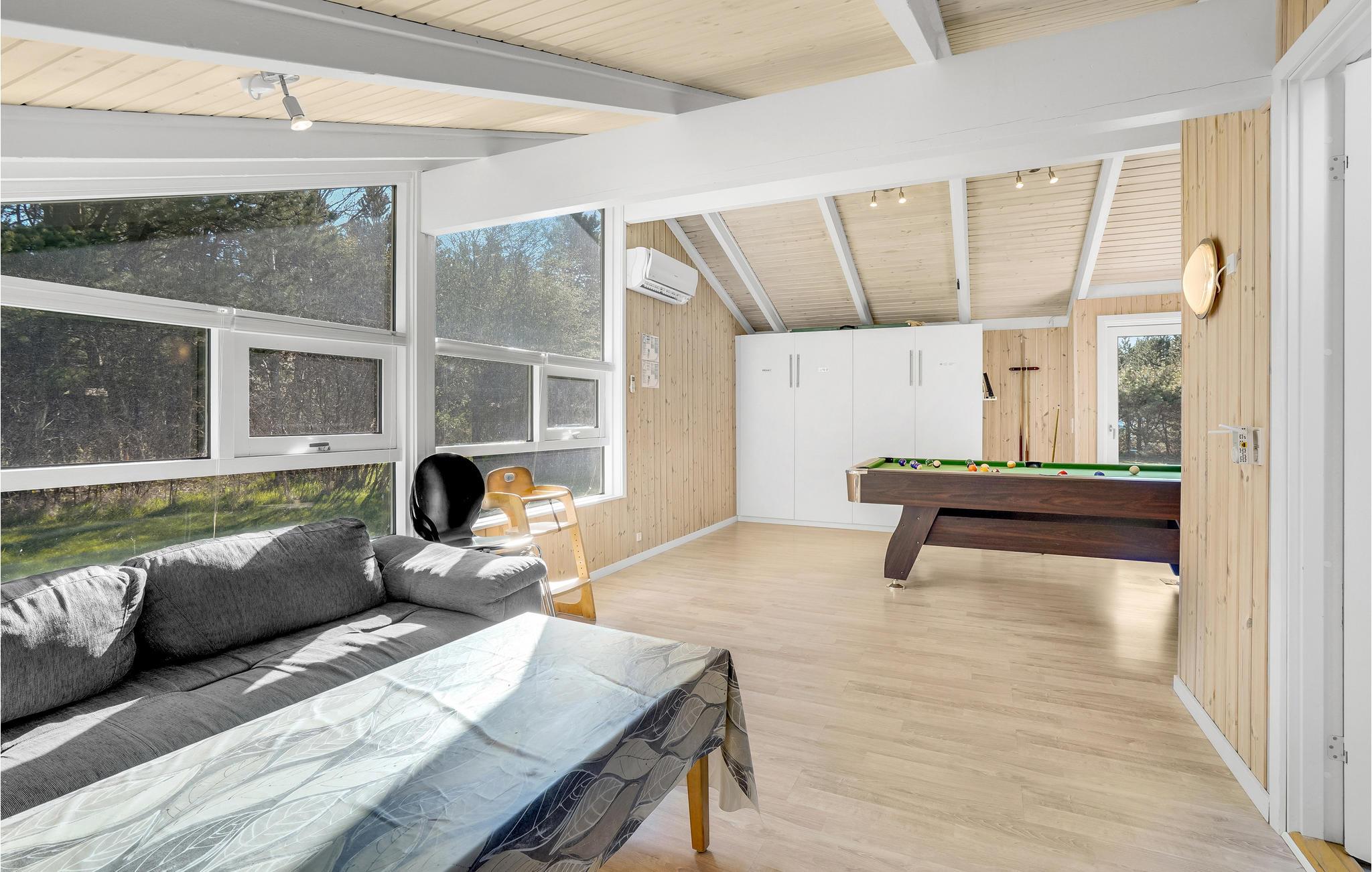 Huset ligger på en dejlig, grøn grund en halv kilometer fra den nordjyske østkyst. Her har I en god base, hvor I kan slappe af mellem jeres ture rundt i området. Boligen er lyst og harmonisk indrettet, og centrum for samværet bliver det store åbne opholdsrum, hvor I kan tænde op i brændeovnen på de kølige aftener. Hvis I vil forkæle jer selv lidt ekstra, er der spabad og sauna, og hvis I trænger til at bevæge jer lidt, er der både bordtennis og et billardbord.