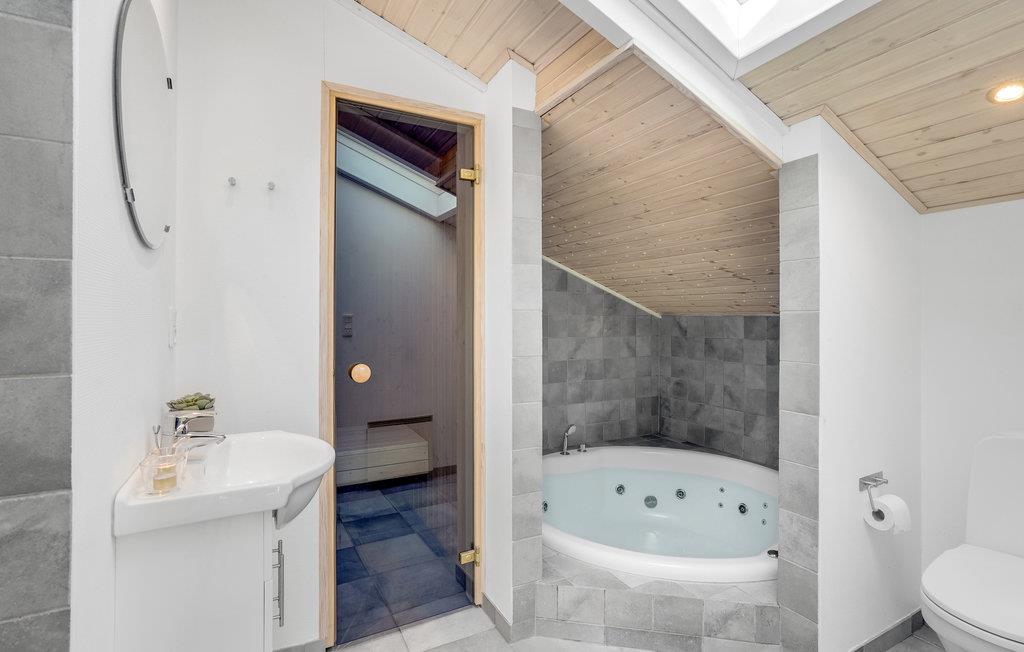 Dejligt sommerhus nær Bratten Strand med spabad, sauna og aktiviteter for hele familien.