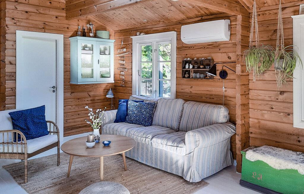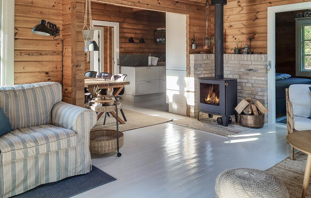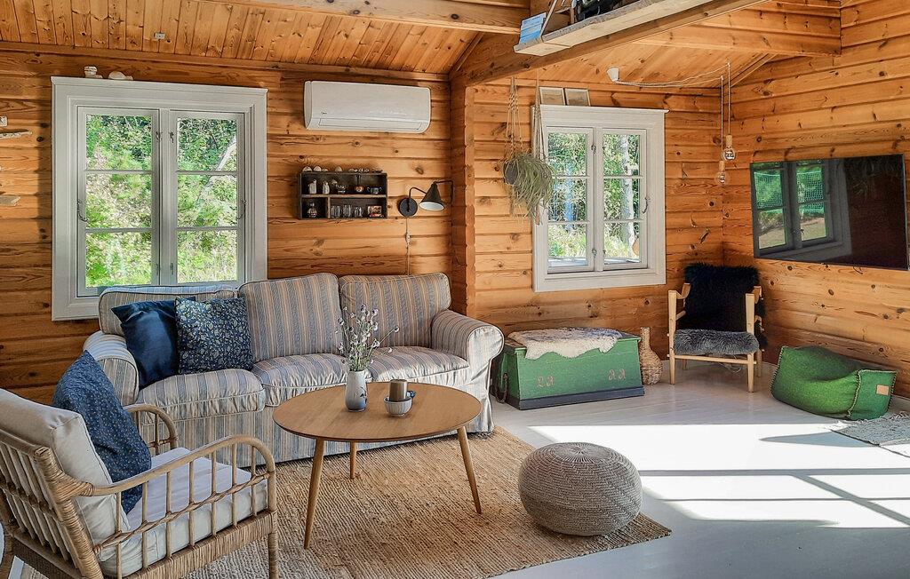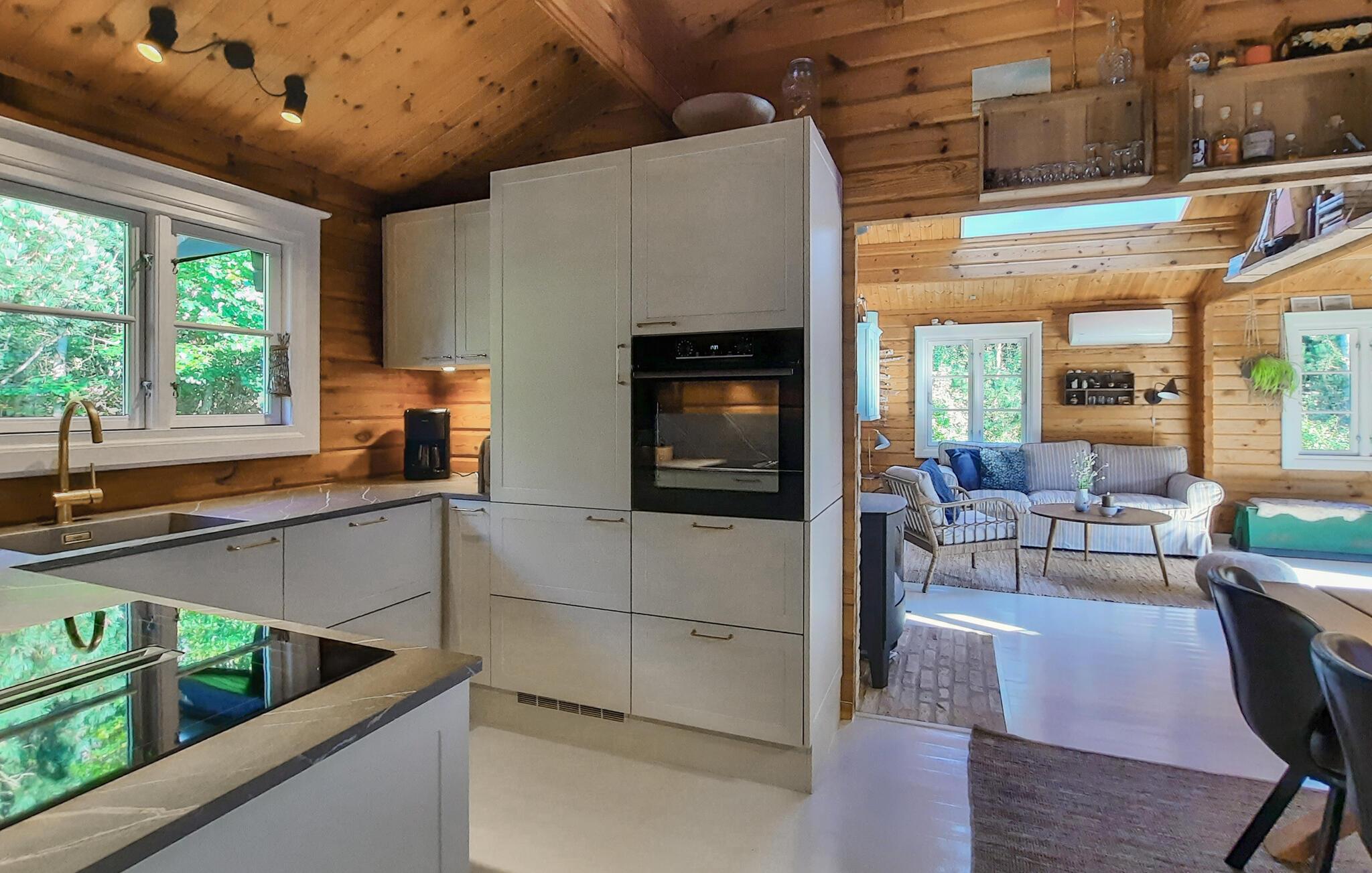 Charmerende bjælkehus med vildmarksbad nær strand