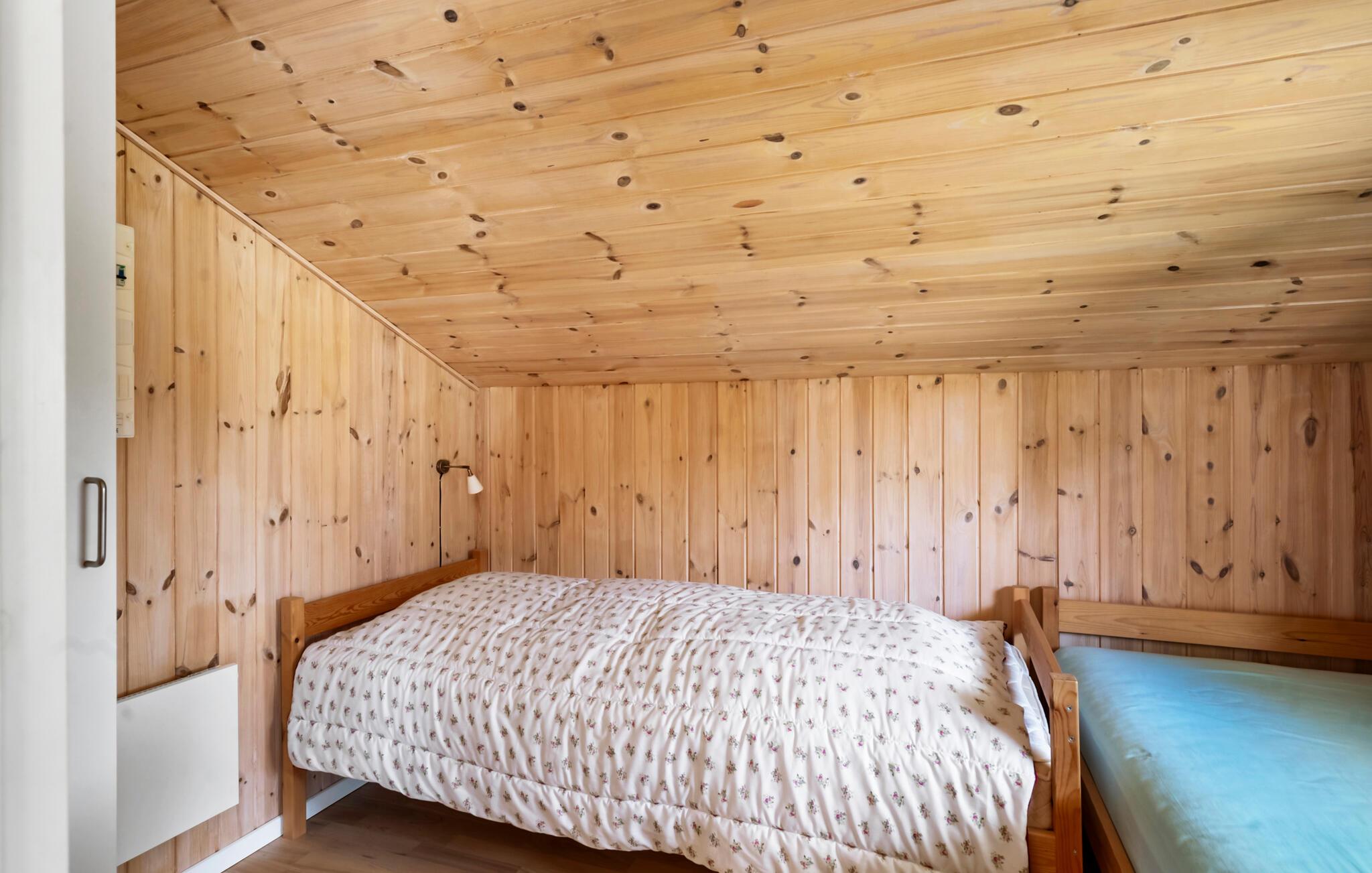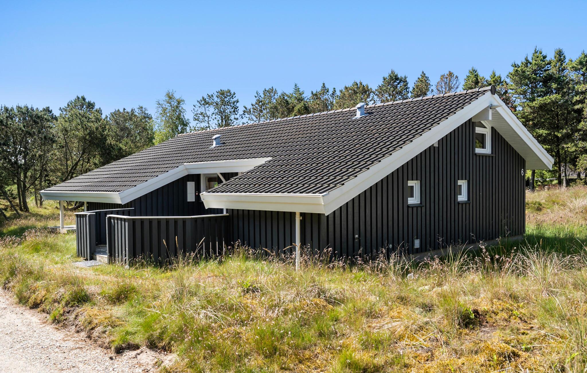 Stilfuldt træhus nær børnevenlig strand