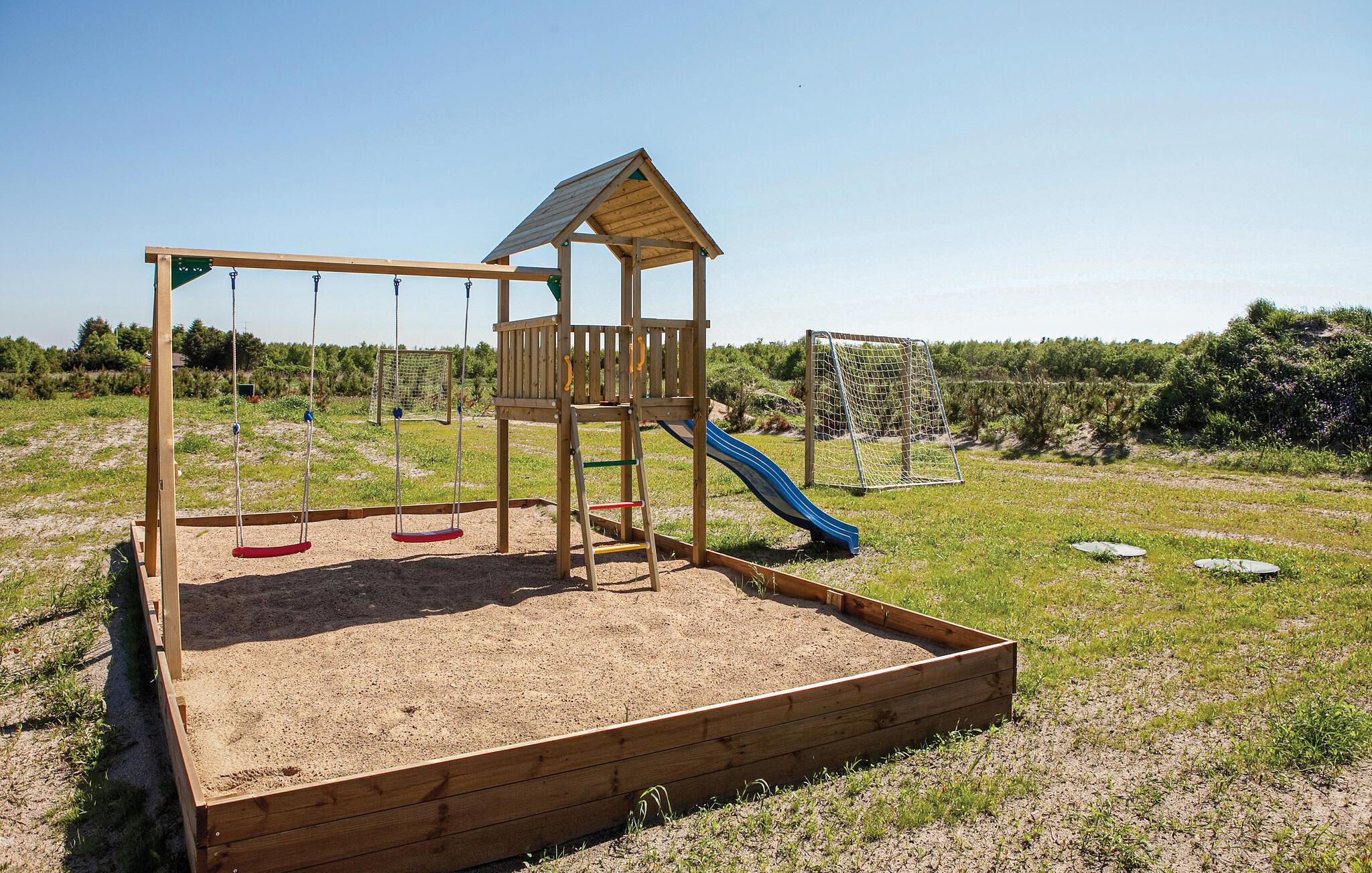 Der er en stor terrasse rundt om huset, så her kan I solbade, mens børnene har det sjovt i haven. Alle gæster får en ferie fyldt med oplevelser her. Legemuligheder er der nok af, for børnene finder både en sandkasse, gyngestativ, legetårn og fodboldmål. På matriklen er der også to SUP-boards og andet udstyr, som kan bruges ved den nærliggende strand.