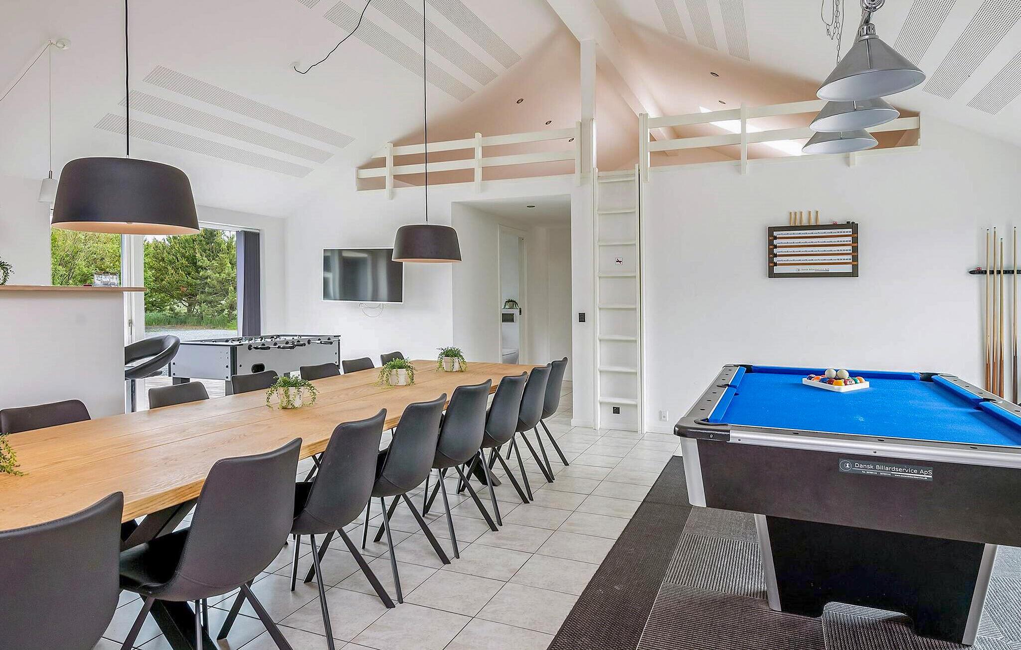 Velkommen til et lyst og rummeligt hus i Bratten Strand, hvor der er alt, hvad I har brug for til en uforglemmelig ferie. Huset har plads til flere familier, og alle kan samles rundt om det store spisebord. I kan også udfordre hinanden i et spil billard eller snuppe en dyst på spillekonsollen i stuen. Der er desuden bar, dart og bordfodbold. Overalt kan I se frem til kvalitetsløsninger i indretningen, fjernsyn i alle soveværelser, surroundsound i stuen og et imponerende wellnessområde med stor pool, spabad og sauna, hvor I rigtig kan slappe af.