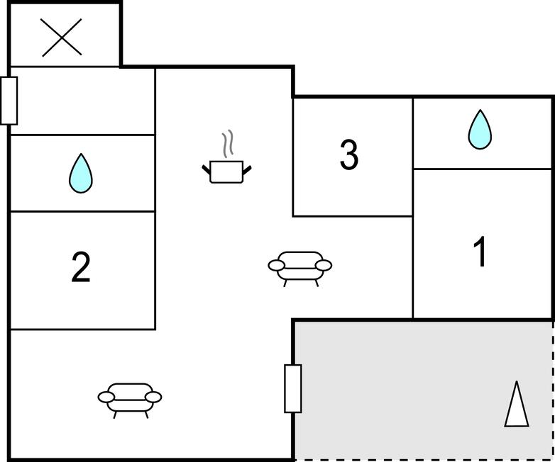Soveværelse (nr. 3) - 2 Sovepladser. (Enkeltseng(e)).