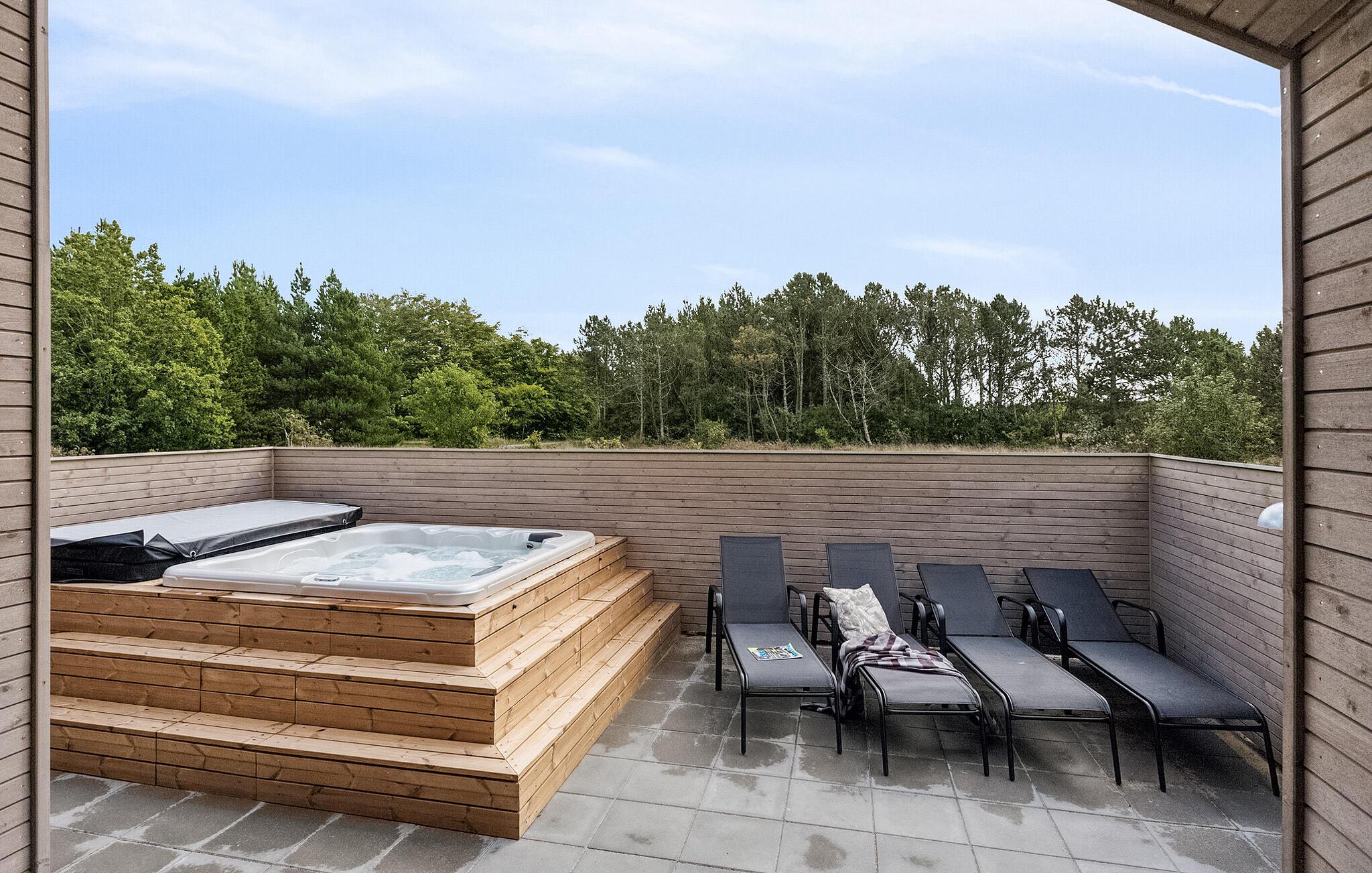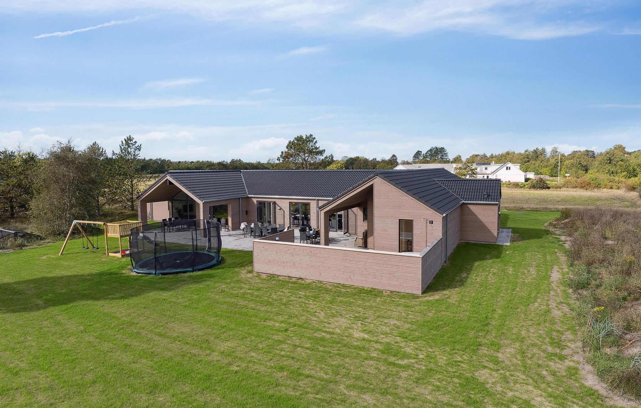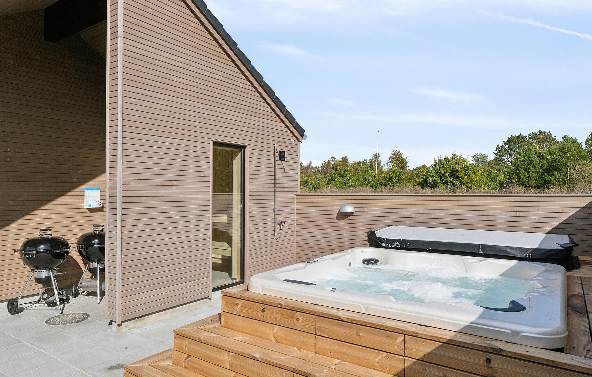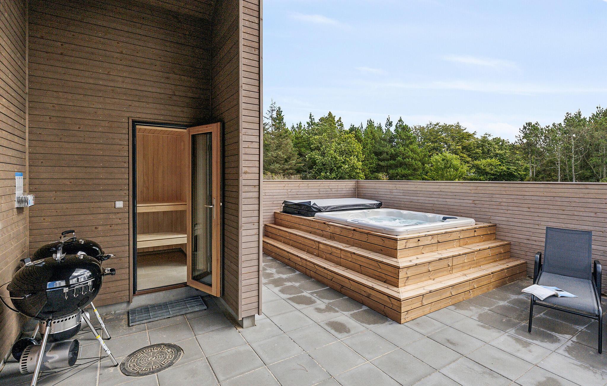 Unikt feriehus med indendørspool, sauna og udendørs wellness nær Bratten Strand.