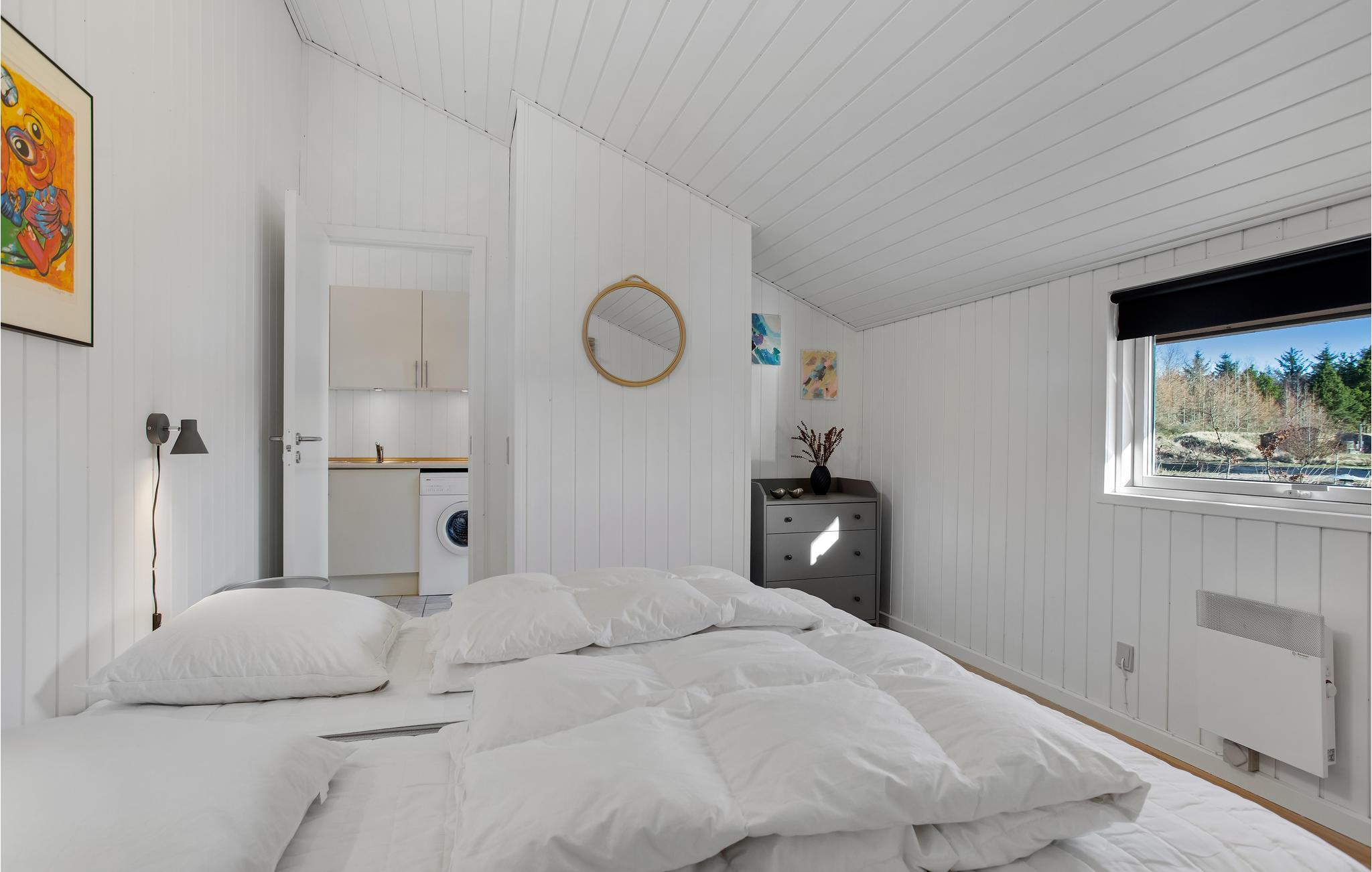 Glæd jer til en familieferie i dette skønne hus, som lægger op til en uforglemmelig ferie. Træd ind i huset og føl jer straks hjemme. Vinduerne går fra gulv til loft og sørger et naturligt lys, som skaber en skøn følelse af ro. Om aftenen kan I hygge jer med madlavning, brætspil eller en god film, mens ilden knitrer i brændeovnen. Glæd jer også til en lille wellness-stund i badeværelset, hvor der både er boblebad og sauna. Hele familien kan se frem til gode timer i det fri, for udendørs venter der er en dejlig have. Den store terrasse bliver jeres faste opholdssted på solskinsdagene. Dæk op til dagens måltider, mens børnene har det sjovt med at løbe og lege på grunden.