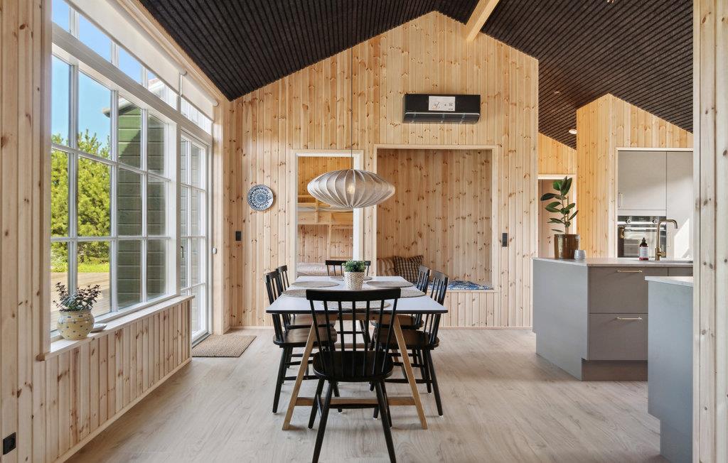 I kan begynde og slutte jeres feriedage med en gåtur ned til vandet fra dette skønne sommerhus, som blot ligger 600 meter fra Bratten Strand. Huset er i sig selv en del af ferieoplevelsen, for der kælet for alle detaljer i det arkitektoniske udtryk, naturmaterialerne og de hyggelige rammer, som udstråler ro og kvalitet. Fyld feriedagene med strandhygge, naturoplevelser og spændende udflugter og vend hjem til ild i brændeovnen og fredfyldte omgivelser.