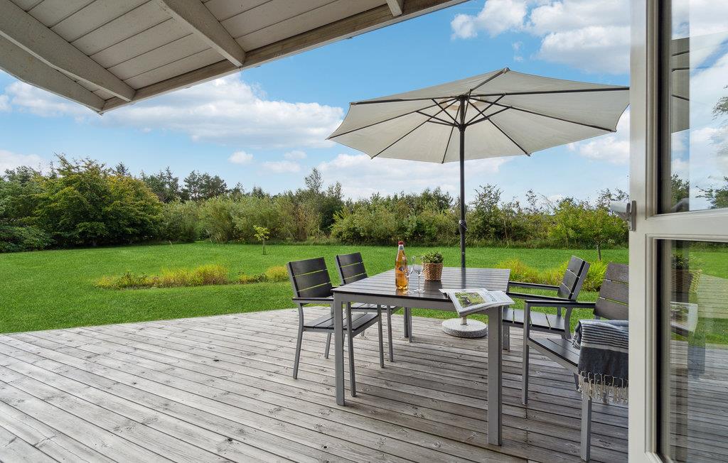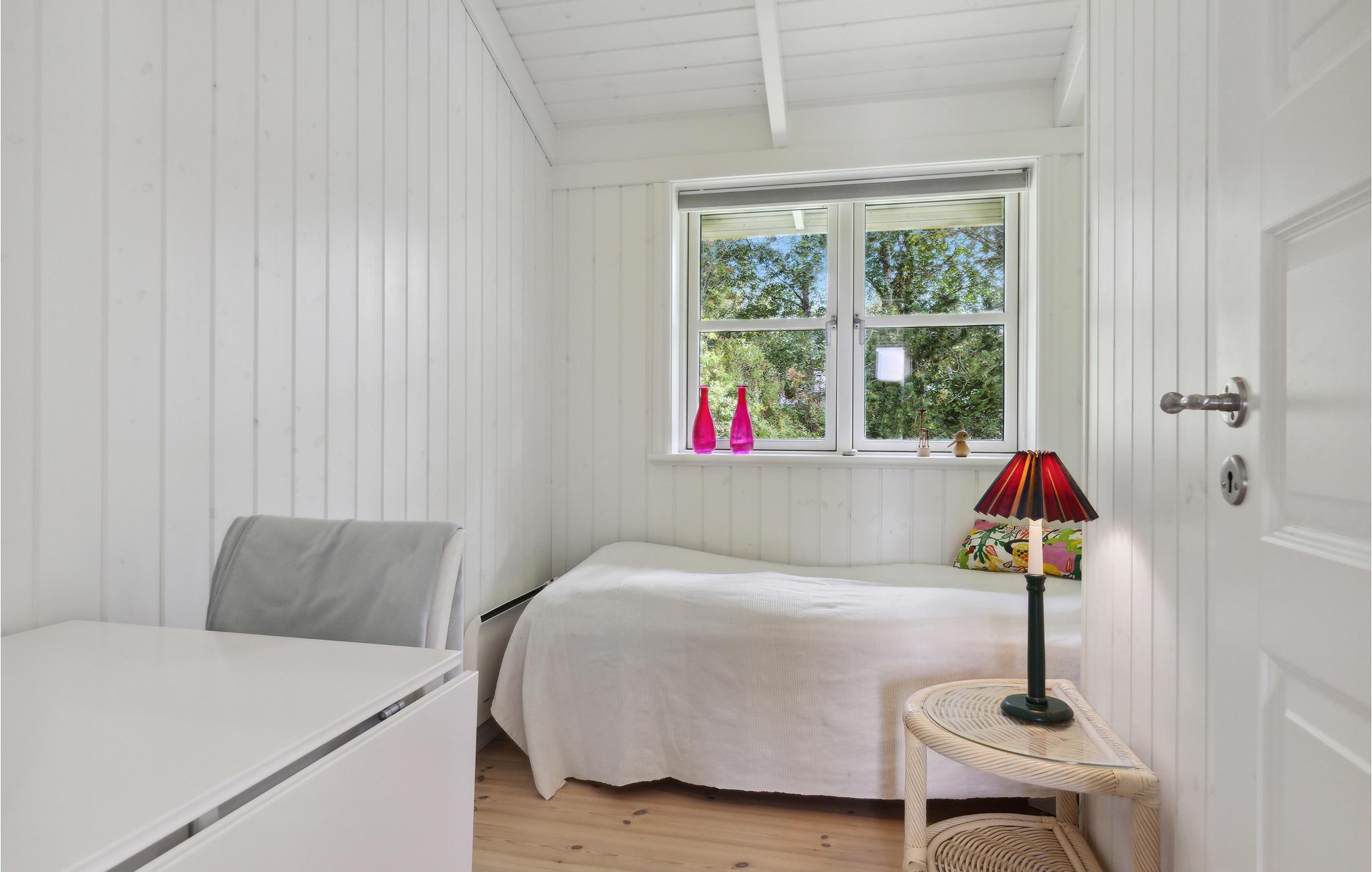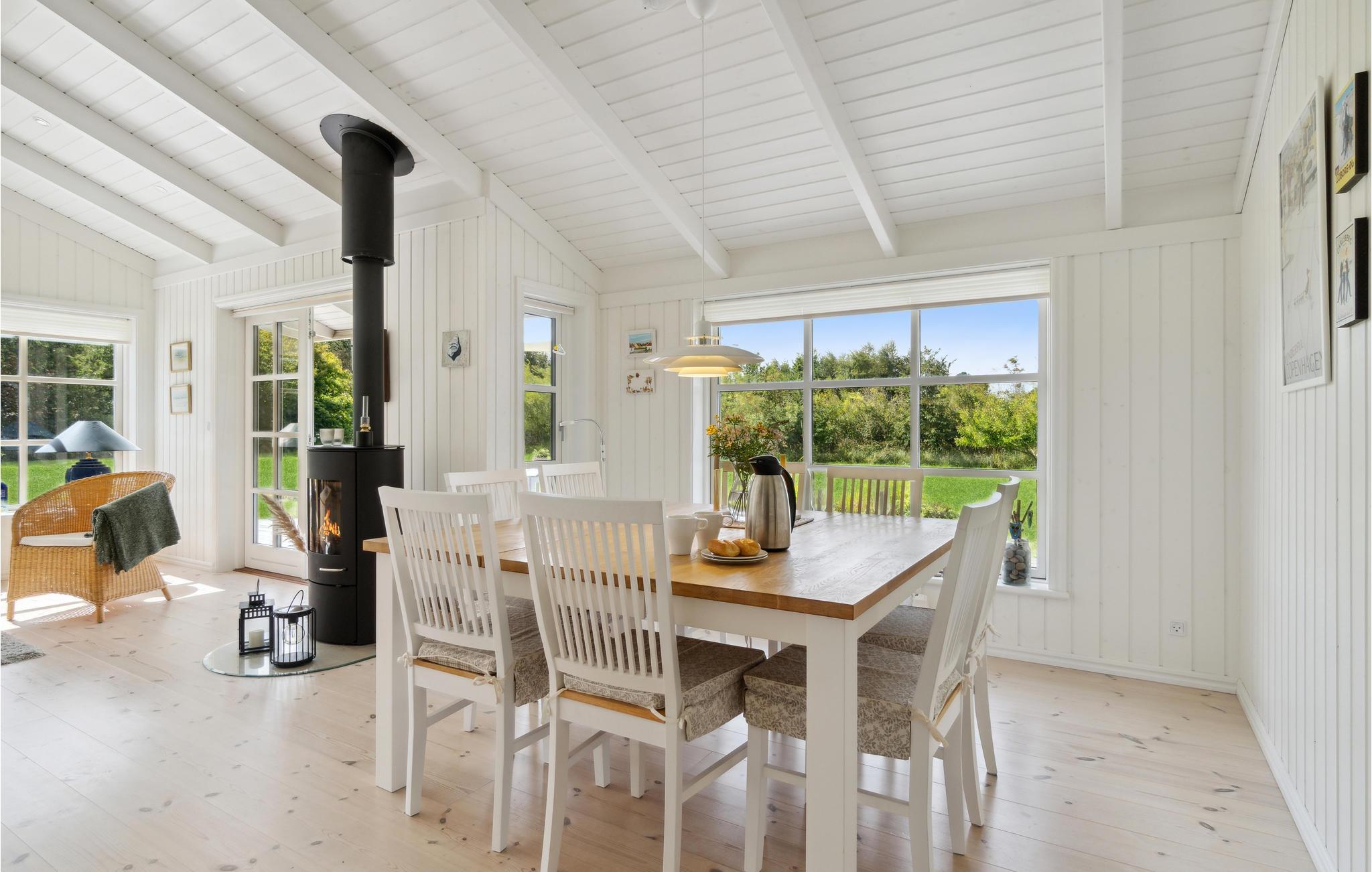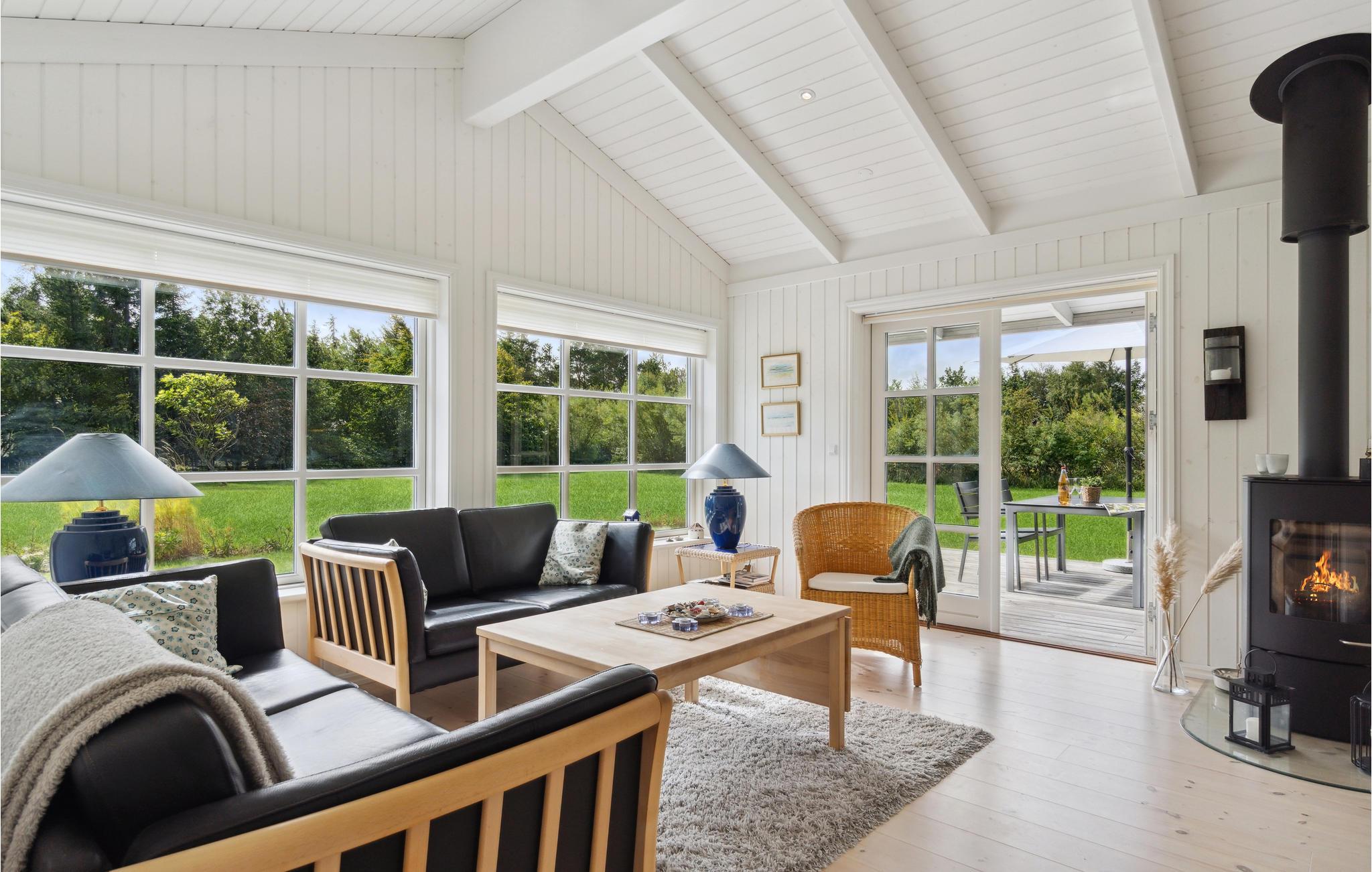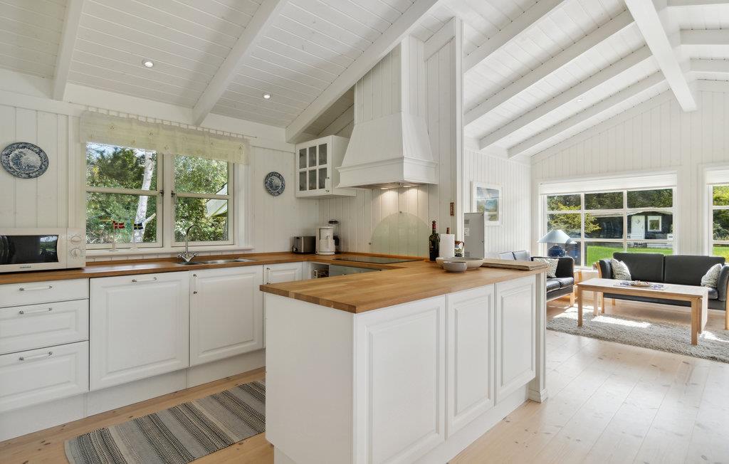 Her er ren idyl! Dette feriehus frister med høj komfort, ro og fred samt skøn busket natur hele vejen rundt. Huset er en drøm af hvid med enkelte farvekontraster, der giver personlighed og harmoni. Nyd den smukke udsigt til naturen gennem de smukke sprossevinduer, mens I hygger i sofaen med en god bog. Bag en kage sammen med børnene, som I kan nyde til aftenkaffen ved spisebordet, mens I spiller familiens favoritbrætspil. Har I brug for ekstra afslapning, kan I forkæle jer selv med en tur i spabadet og svede hverdagens stress ud i husets sauna. Nyd solen i fulde drag på den store terrasse og ryk alle dagens måltider udenfor, når vejret viser sig fra sin bedste side. Haven er en sand perle for alle barnlige sjæle, og dens størrelse er helt perfekt til løbekonkurrencer og meget mere. Gå en tur til stranden og leg i vandet med jeres børn. Ikke langt fra huset finder I en stor legeplads.