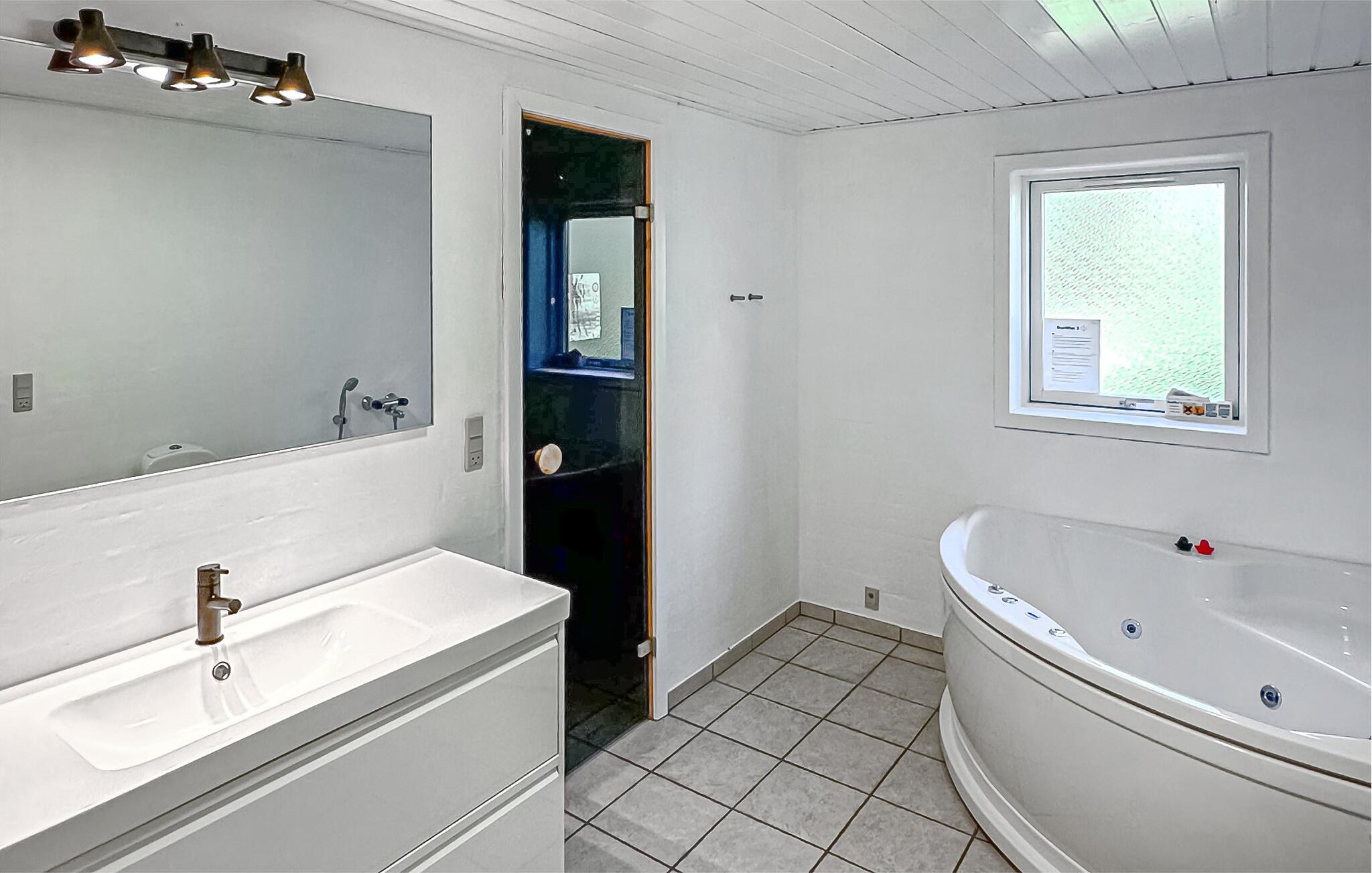 Stort feriehus med aktiviteter, sauna og spabad tæt på stranden i Bratten.