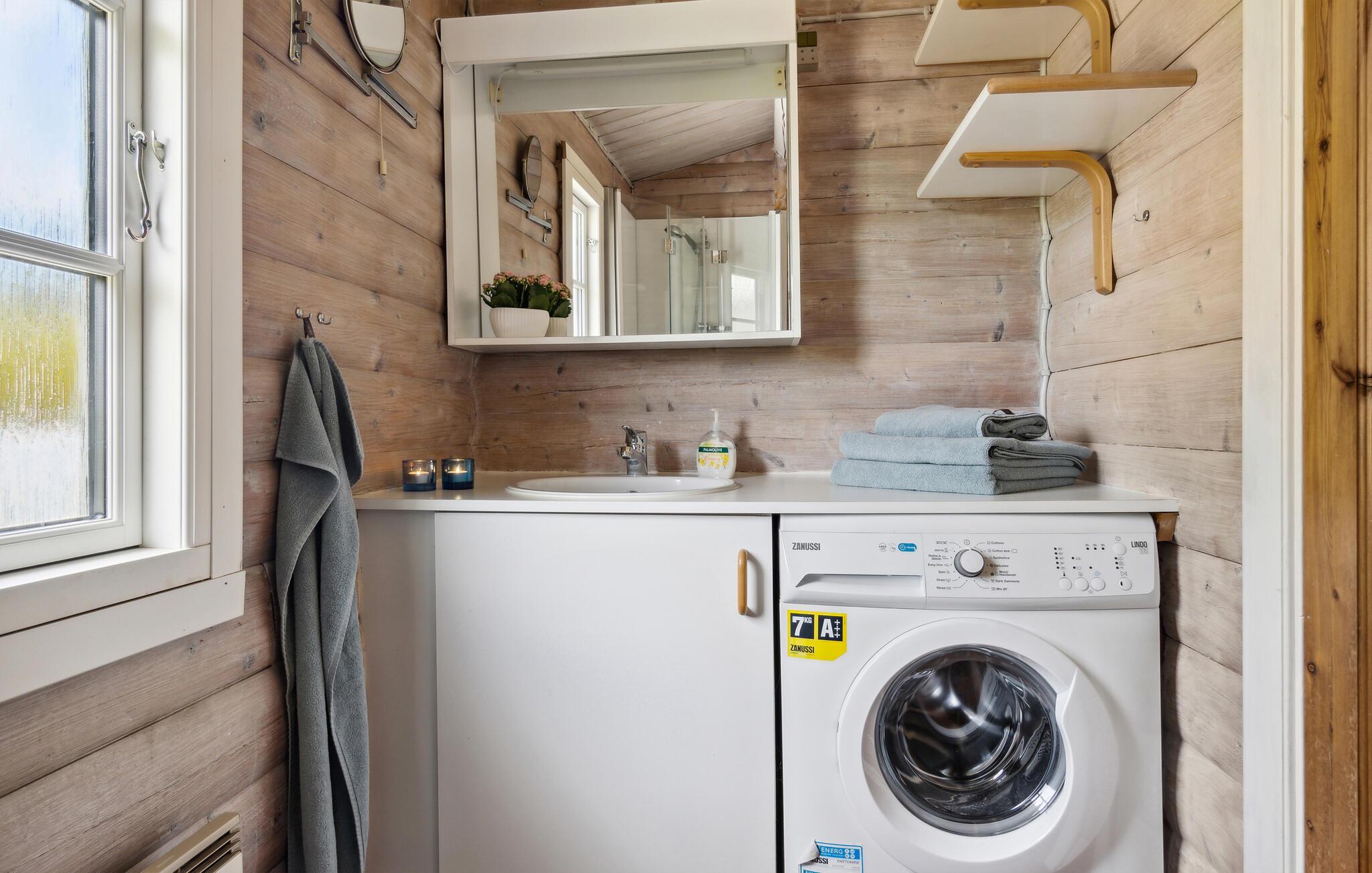 Hyggeligt træhus ved børnevenlig strand i Bratten