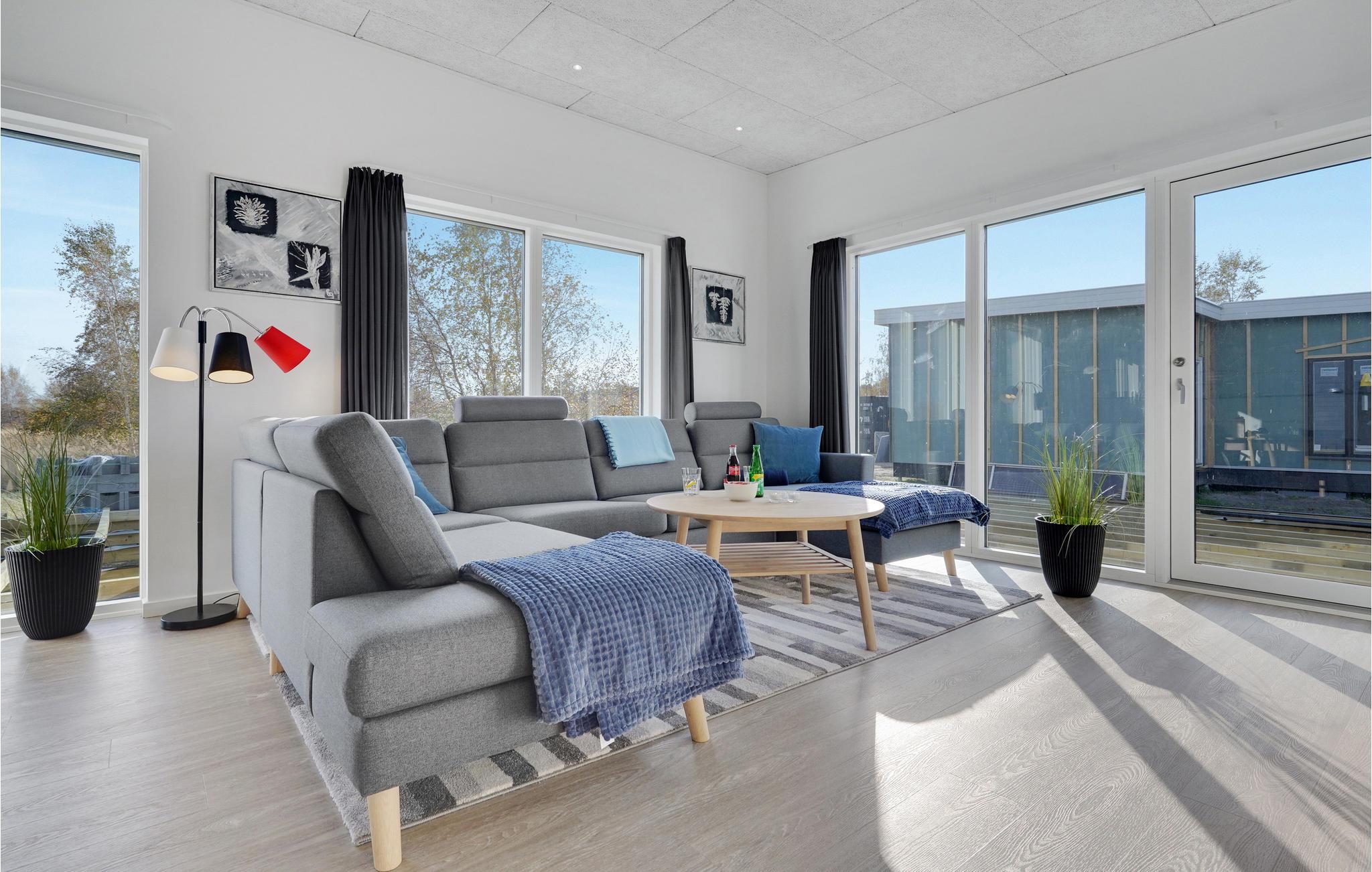 Glæd jer til dette topmoderne luksushus. Indretningen er åben og lys, spækket med lækre faciliteter. Gulv til loft-vinduerne lukker et stort lysindfald ind fra flere vinkler, hvilket giver jer en behagelig ramme om måltider og aftenhyggen. Der er godt Wi-Fi, og huset er desuden udstyret med Playstation 4, smart-tv og Blu-Ray, så I kommer ikke til at kede jer.