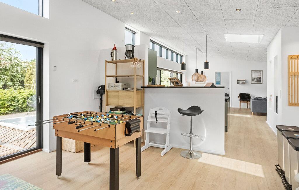 Velkommen til Bredfjed, som kun ligger et lille smut i bil fra Rødby færgehavn. Her venter dette gennemført elegant sommerhus, som giver jer et fantastisk udgangspunkt for at opleve Lollands seværdigheder og slappe af med alt, hvad dertil hører. Huset emmer af kvalitet og lækre indretningsløsninger, som gør jeres feriedage ekstra behagelige. Tilbered dagens måltider i det åbne køkken og dæk op ved spisebordet eller på træterrassen, når solen er fremme. Oven på en lang dag med oplevelser er det herligt at vende hjem til stuens bløde møbler eller måske snuppe et spil bordfodbold, hvis I trænger til en hyggelig aktivitet.
