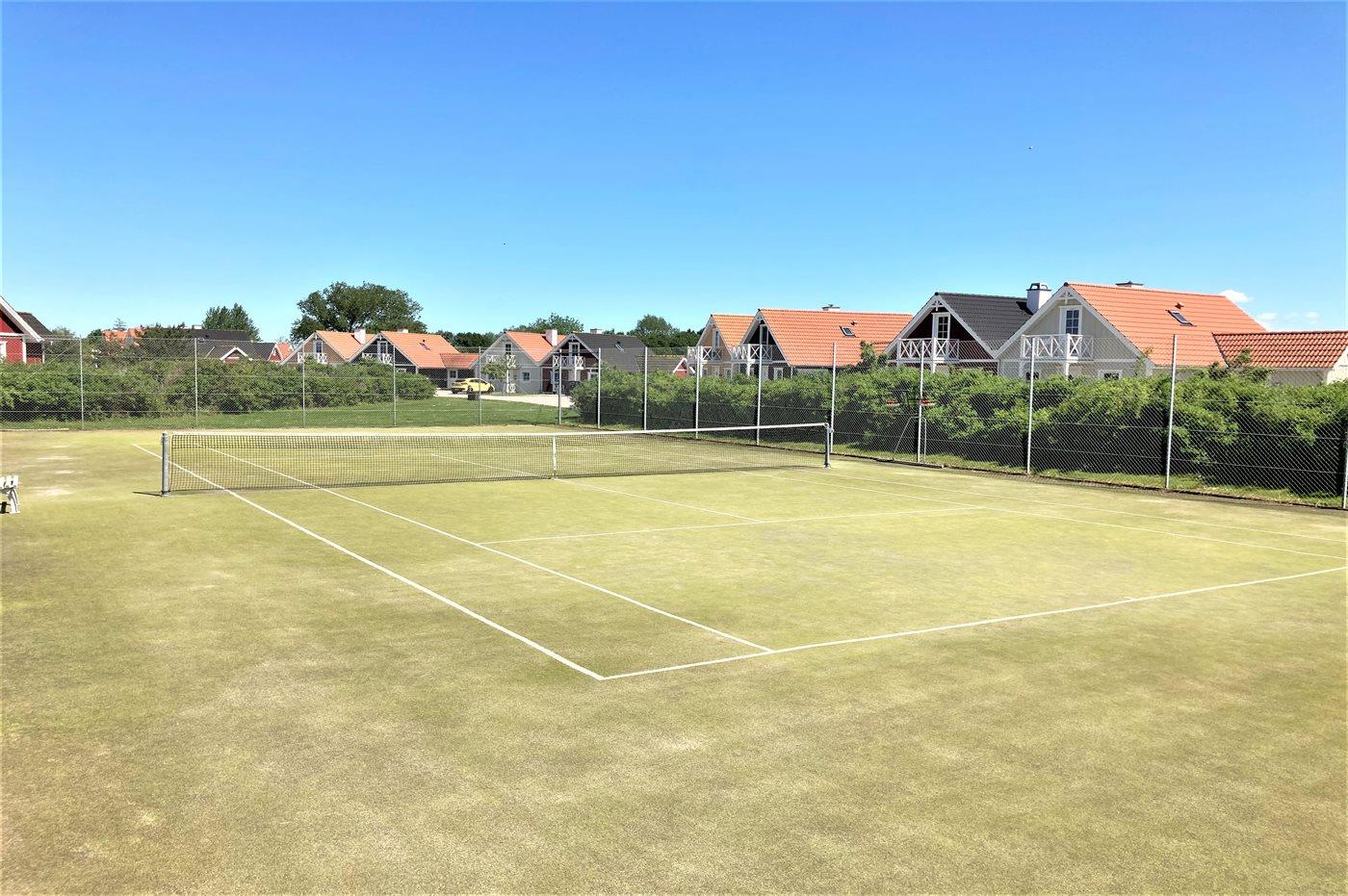 Arkitekttegnet rækkehus i træ i 2 etager. Til huset hører en åben terrasse med havemøbler samt balkon på 1. sal med udsigt over vandet og markerne. Klinkegulve i stueetagen, gulvtæpper på 1. sal. Huset ligger i et spændende sommerhusområde med gode aktivitetsmuligheder, bl.a. fælles legepladser, petanquebane, tennisbane samt beach-volleybane.