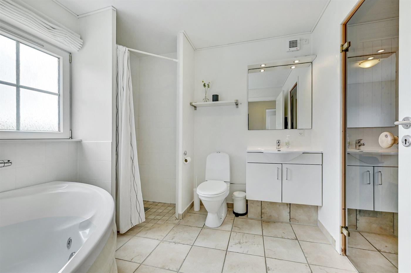 Der er 1 badeværelse med bruseniche og 2 toiletter, heraf 1 gæstetoilet. Der er gulvvarme på 1 badeværelse. I saunaen er der mulighed for afslapning.