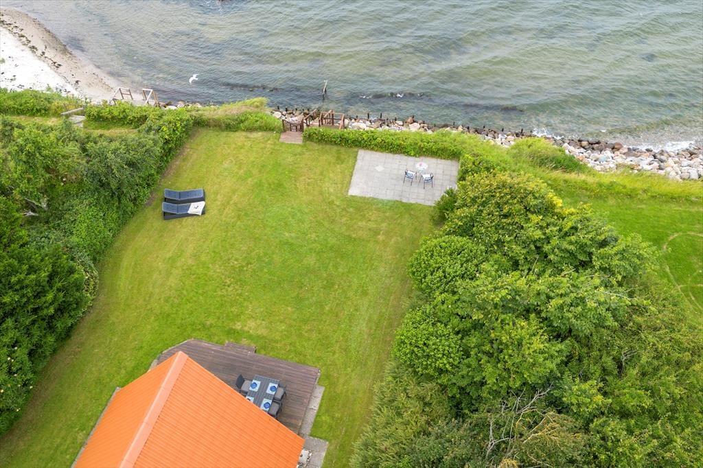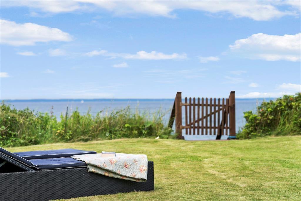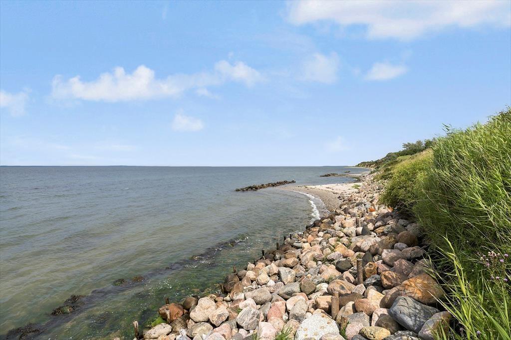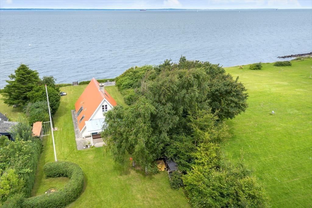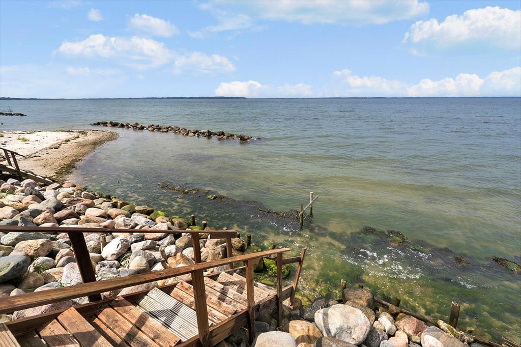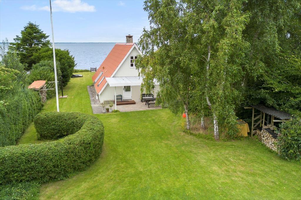 Renoveret sommerhus i 2 plan med områdets vel nok bedste beliggenhed. Fra haven er der trappe direkte ned til stranden. Midtvejs på trappen er der en fin repos, hvor man kan nyde solnedgangen. Huset ligger for enden af et lukket vænge og indeholder i stueetagen en stor kombineret spise- og opholdsstue med trappe til 1. salen samt et lyst køkken. Derudover er der i stueetagen et soveværelse med 2 senge, en entré samt et badeværelse med vaskemaskine. På 1. salen er der en lille repos samt 2 soveværelser, med 2 sovepladser i hver. Det ene værelse har panoramaudsigt til vandet. Området indbyder til afslapning, lange gåture eller måske en tur med fiskestangen.