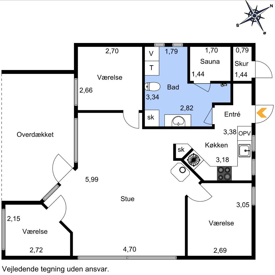 Velkommen til vores hyggelige sommerhus. Sommerhuset er en skjult perle, der ligger lidt gemt væk på en lille stikvej, kendt af de lokale som et yderst attraktivt sted at have et sommerhus. Her omgiver frodige træer og bakkede landskaber ejendommen, hvor man både fra stuen, 2 af værelserne samt terrassen kan nyde den betagende udsigt over Flensborg Fjord. Foran huset strækker en mark sig ud, hvor køerne græsser hele sommeren. Her er det ren afslapning og en fornemmelse af at være væk fra hverdagens travlhed. Sommerhuset har en rummelig indretning på 77 kvadratmeter, der inkluderer en indbydende entré, der smidigt flyder ind i køkkenet. Køkkenet, er velholdt og funktionelt. Den store stue har et imponerende loft til kip og med store vinduespartier i gavlen, kommer den betagende udsigt helt ind i stuen og fylder rummet med naturligt lys. Sommerhuset byder på tre soveværelser. Det rummelige badeværelse er udstyret med en sauna, der tilbyder ultimativ afslapning efter en dag med udendørs aktiviteter. En nyanlagt terrasse er tilgængelig fra stuen og er det ideelle sted at tilbringe solrige dage og aftenmåltider i fred og ro. Området byder på mange gode vandre muligheder og det er en meget smuk gåtur på 2,8 km af gendarmstien til gode handle muligheder i hyggelige Broager. Hvis man vil bade er der en lille hyggelig strand med badebro indenfor 400m og tilbage ved sommerhuset udendørsbruser med varmt vand mens man kigger ud over Flensborg Fjord. Sommerhuset er i fremragende stand både indvendigt og udvendigt, med fortryllende beliggenhed, fantastisk havudsigt og masser af charme. Vi vil gerne dele muligheden for gode oplevelser i sommerhuset for andre og det er vigtigt for os at det er mennesker som værdsætter natur og kvalitet samt vil passe på sommerhuset og omgivelserne. - Bemærk: Soveværelse 1: Smal dobbeltseng m/elevation 160*200 cm – ingen opbevaring Soveværelse 2: Dobbeltseng eller 2 enkeltsenge 180*200cm – opbevaringsplads Soveværelse 3: 2 enkeltsenge 80*200cm – ingen opbevaring Spisebord og sofa arrangement er i udgangspunkt til 4 personer Fester ikke tilladt Obs, udlejes ikke til erhversmæssigt brug.