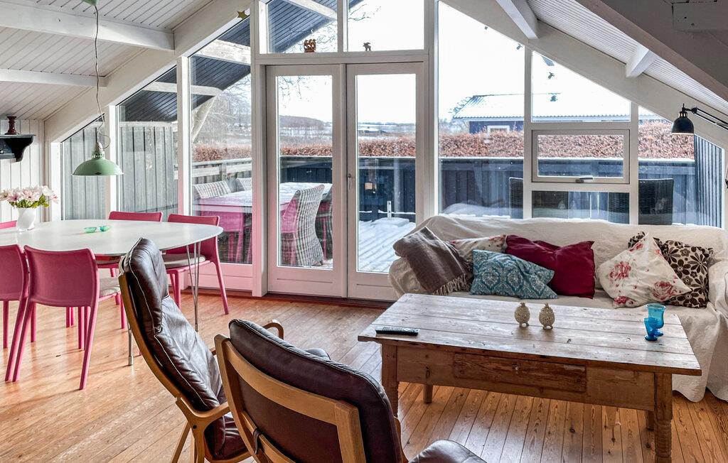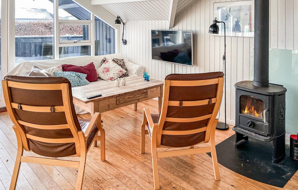 Træd ind i det åbne interiør og nyd straks den lyse og indbydende atmosfære. Sæt jer til rette i sofaen og lænestolene i opholdsstuen og nyd udsigten ud af de store vinduer. Slap af foran brændeovnen og nyd dens hyggelige varme på kølige dage. Brug stuen til aftener med snak, læsning eller fjernsyn. Tilbered jeres måltider i det smukke, veludstyrede køkken, som tilbyder rigelig bordplads.