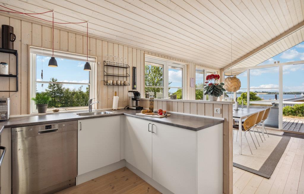 Dette sønderjyske feriehus lover en ferie med gang i! Vidtstrakt bakket natur, mountainbikeruter og vandrestier. Lyder det ikke godt? Feriehuset med en ugenert beliggenhed for enden af en blind vej er et ideelt udgangspunkt for en aktiv ferie og ligger centralt i forhold til mange attraktioner i området. Huset er veludstyret, smagfuldt indrettet og inviterer til mange hyggelige stunder med fælles madlavning, brætspilshygge, puslespil, filmaftener og meget mere. I får en vidunderlig udsigt over vandet gennem panoramavinduerne i stuen, hvor I kan se den travle skibstrafik til og fra Flensborg. Tilbring aftenerne med et glas vin i sofaen eller nyd en dejlig grillaften på terrassen og snak om dagens oplevelser. Glæd jer til morgendagens tur til stranden, som ikke er mange skridt væk.