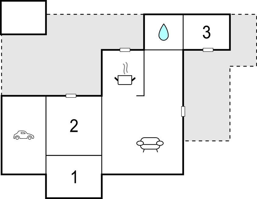 Bemærk: Der er adgang til S3 via badeværelset og S2.