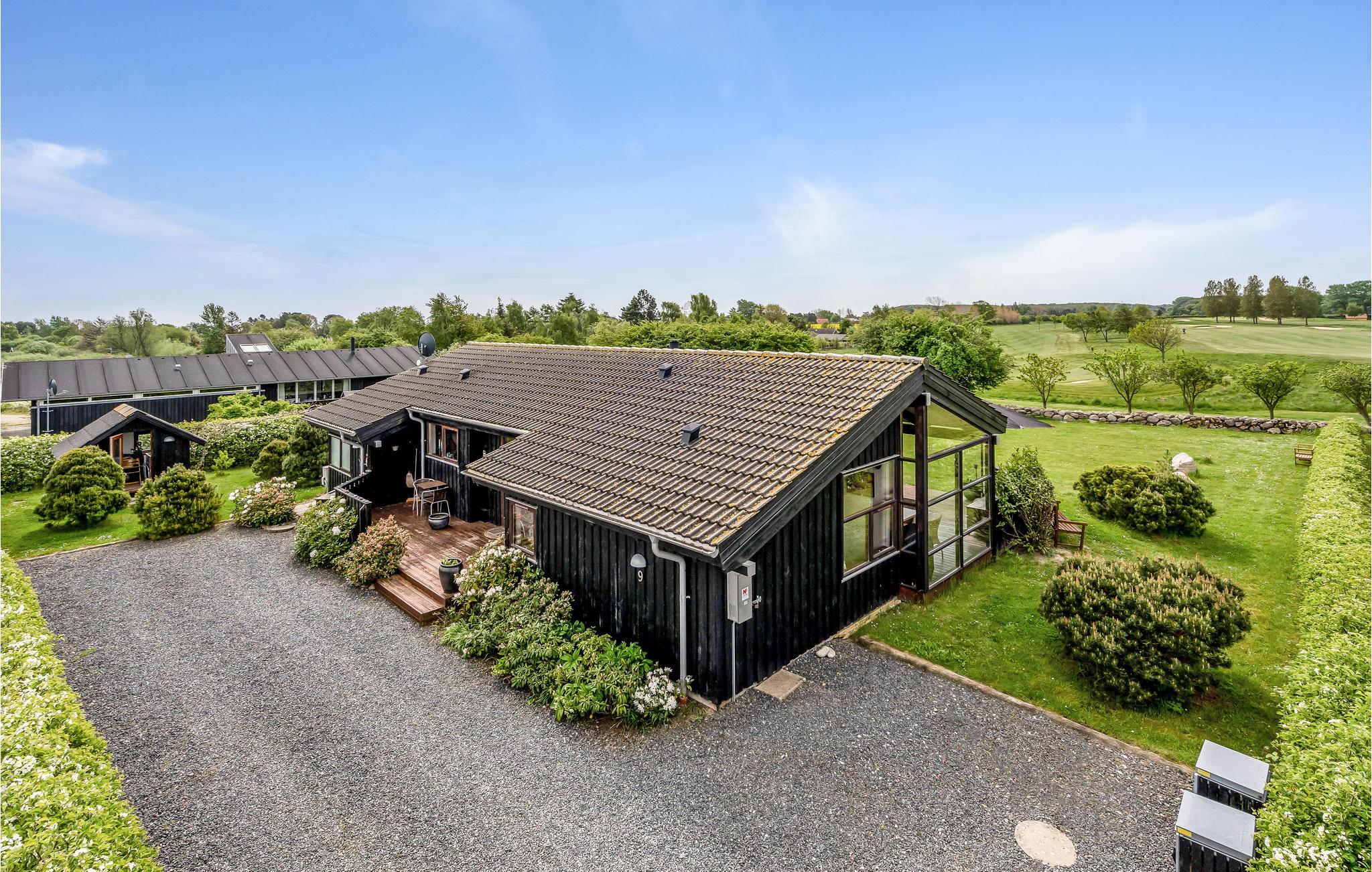 Udenfor finder I den rummelige terrasse, som er delvist overdækket og giver en flot udsigt til golfbanen ved siden af. Her står den på mange hyggelige timer med solbadning og med at tilberede lækre retter på grillen.