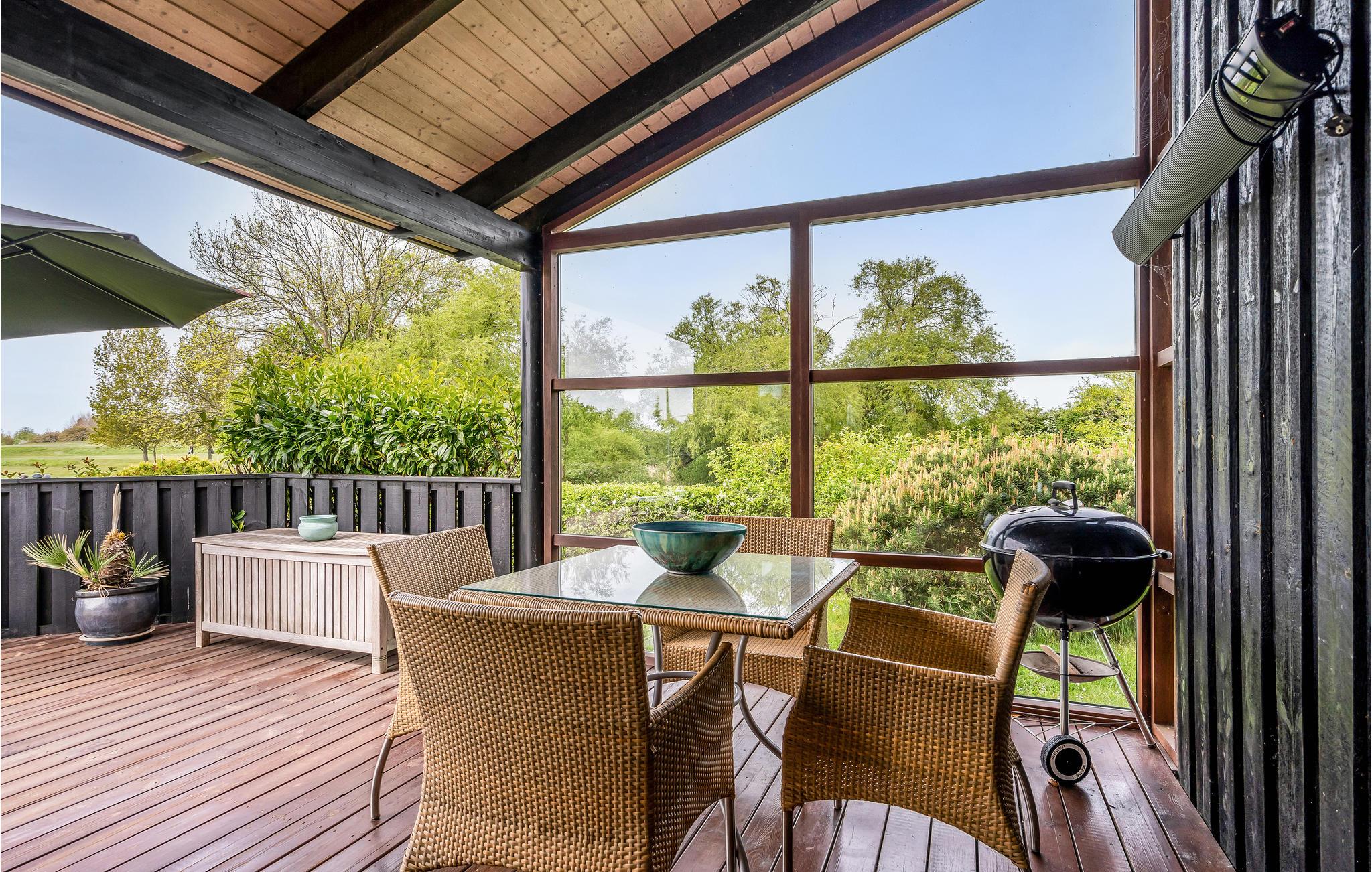 Der er lagt op til en fantastisk ø-ferie i dette velindrettede træhus med en flot udsigt over golfbanen.