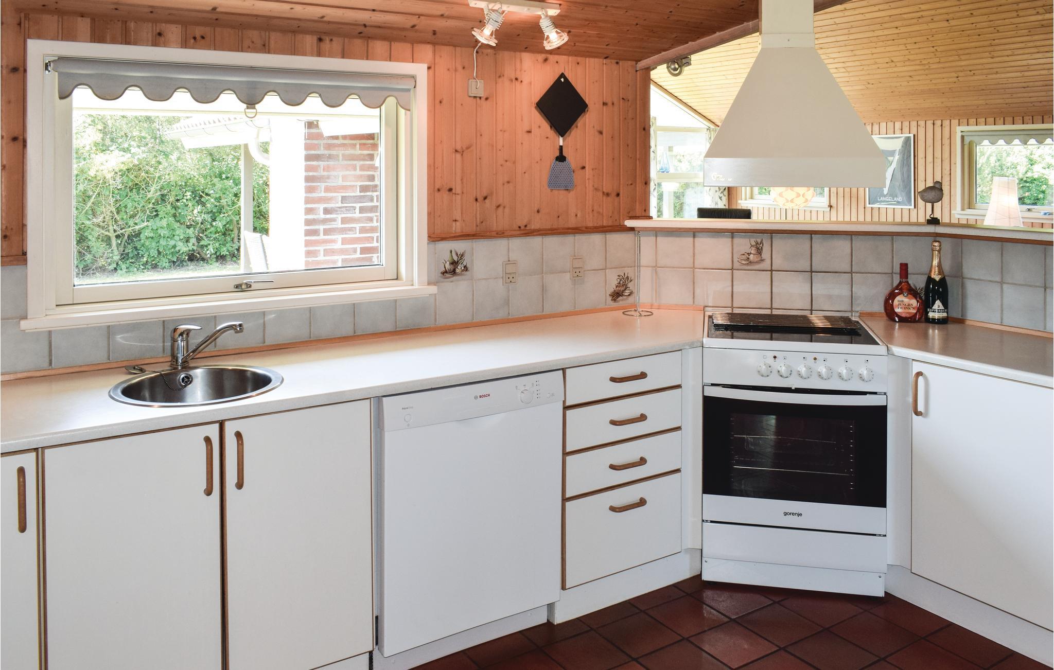 Dette dejlige træ/stenhus ligger i feriehusområdet Bukkemose, kun 1,6 km fra Langelands Golfbane med 18 huller. I dette naturskønne område er der mulighed for mange oplevelser, bl.a. har lystfiskere rigtigt gode fangstmuligheder fra stranden. Huset har i øvrigt egen udendørs fiskerenseplads og dybfryser. Til børnefamilier er der gynge, sandkasse og klatretårn foruden barneseng og høj stol. Der er faste tæpper på gulvene. I det dejlige badeværelse med spabad kan hele familien tilbringe mange hyggelige timer. Eller tag en udflugt til Bagenkop, som er Langelands sydligste by med et gammelt fiskersamfund og hvor man stadig kan opleve en velbevaret og autentisk fiskerihavn, hvorfra der dagligt stævner kuttere ud, desuden findes der en moderne, flot og velbesøgt lystbådehavn, hvor der om sommeren er musik på fritidsscenen. Bagenkop er en aktiv by, hvis man ønsker at være fysisk aktiv, har byen en sportshal, et fitness center og Jump`n Move for de lidt yngre eller man kan gå en tur på Ildsjælefodsporet (ca. 2 km), som fører dig gennem byen og fortæller en lille historie. Ved Klise Nor kan du finde mindre flokke af vilde og på Langelandsfortet med Koldkrigsmuseum, kan du gå ombord på en ubåd, læse om hvordan spionerne arbejdede under den kolde krig og meget, meget mere.