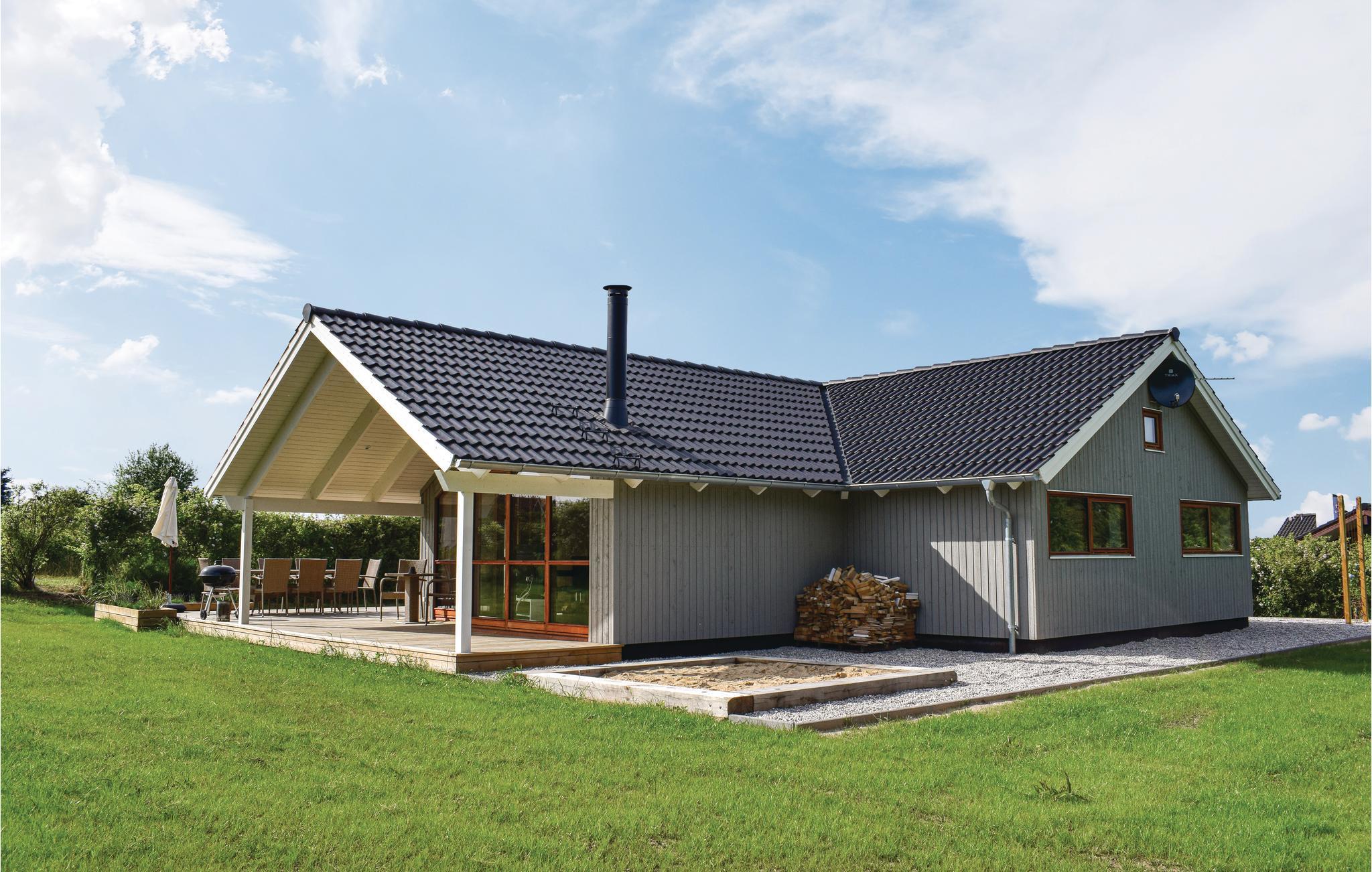 Lækkert træhus i Bukkemose tæt på vand og golfbane med moderne udstyr og dejlig terrasse.