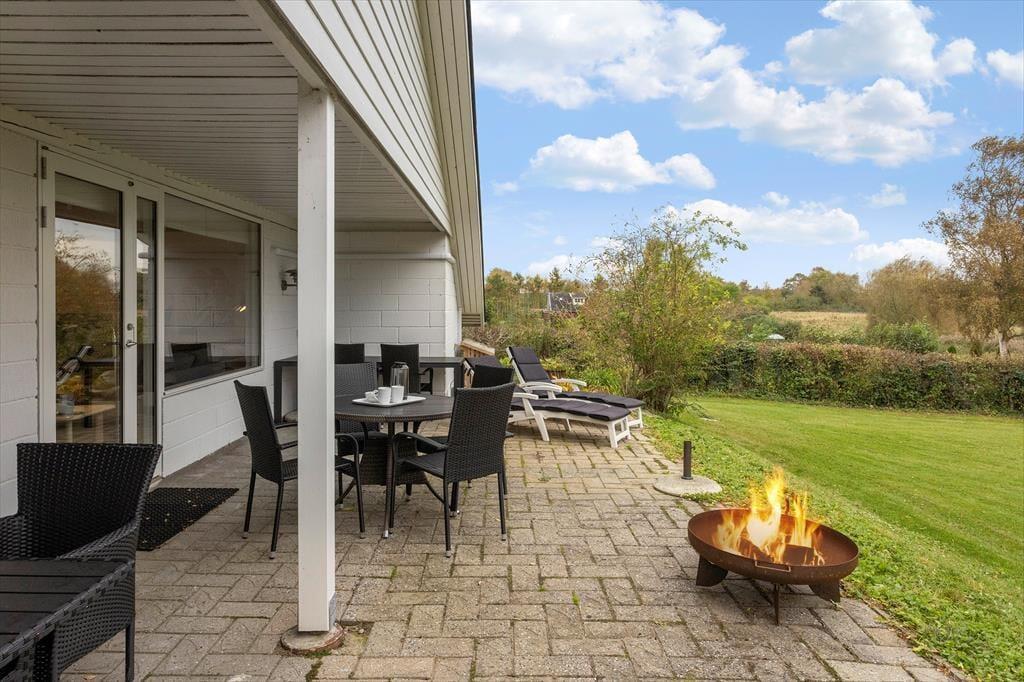 Udendørs kan du virkelig mærke, hvordan roen sænker sig. Huset har to terrasser, så du kan følge solen hele dagen – fra morgenkaffen i de tidlige timer til aftensmaden i solnedgangen. Du kan bage snobrød, varme skumfiduser over det lille bålsted eller grille aftensmaden på husets Weber-kulgrill. Den flotte udsigt over landskabet skaber en dejlig ramme for ferien, og du er velkommen til at tage familiens hund med, så alle kan være en del af oplevelsen. For de fiskeglade gæster er huset udstyret med både kummefryser og fiskevaskestation, så dagens fangst nemt kan renses og opbevares – også hvis der er fanget mere, end familien kan spise samme dag.