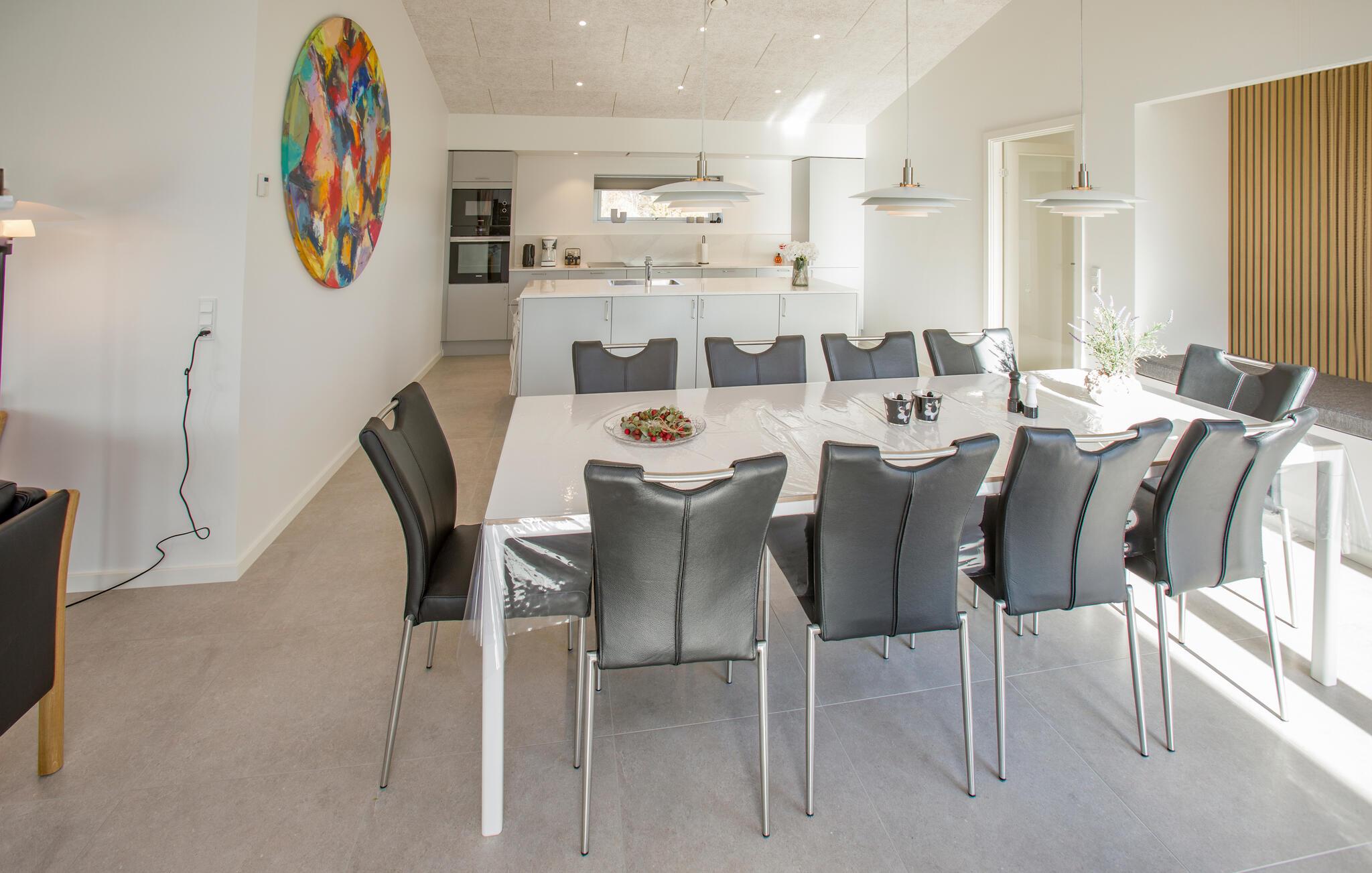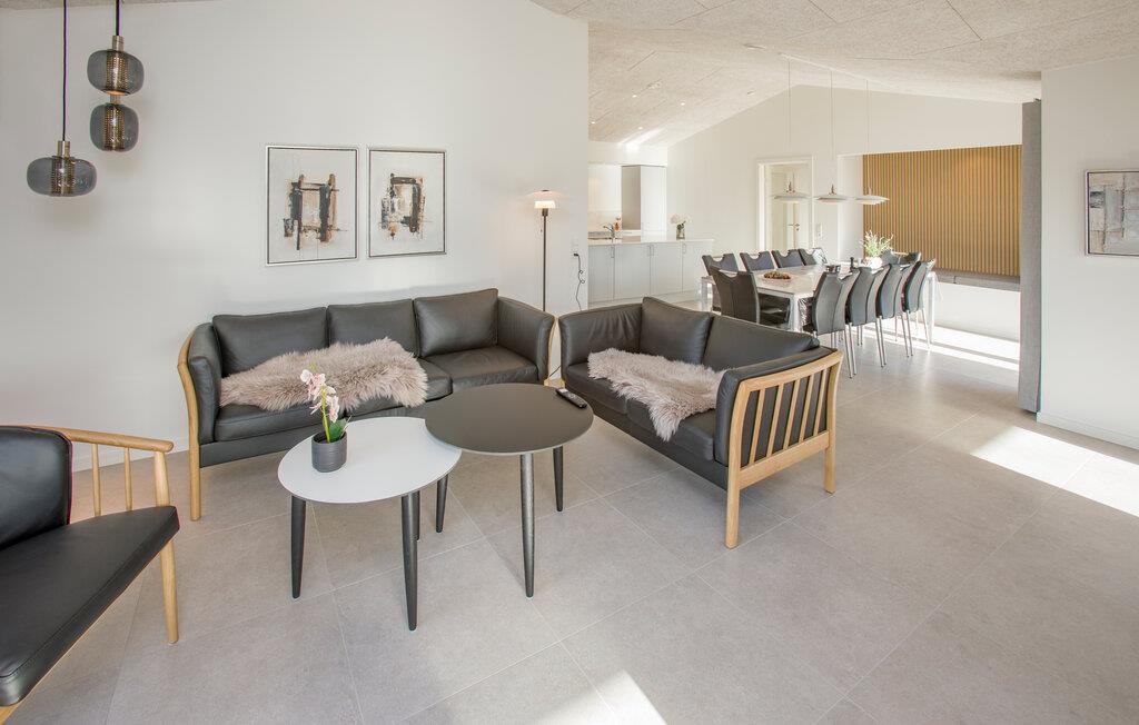 Der er lagt op til en række fredfyldte dage i dette stilfulde feriehus, der ligger lige ved siden af ??den attraktive Hvide Klit golfbane. Glæd jer til den lyse, åbne stue med elegante indretningsløsninger, store vinduer og komfortable siddeområder. Tilbered jeres måltider i det moderne, fuldt udstyrede køkken med kogeø og lækre apparater og nyd retterne ved det lange spisebord med udsigt over landskabet. Slap af i stuen foran det store smart-tv eller snup et spil billard eller bordtennis i det private aktivitetsrum.