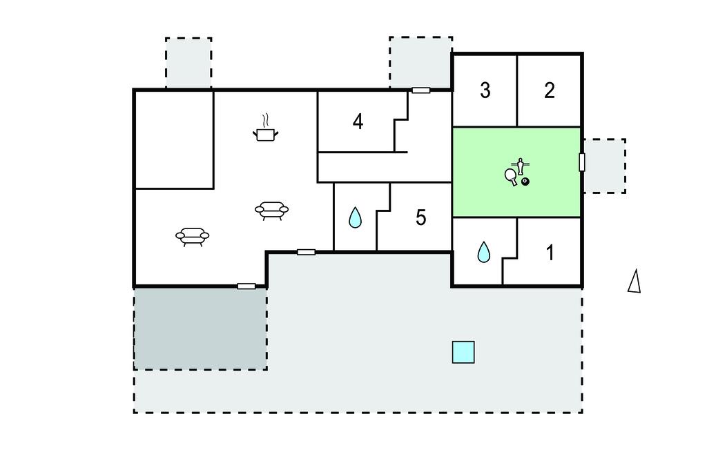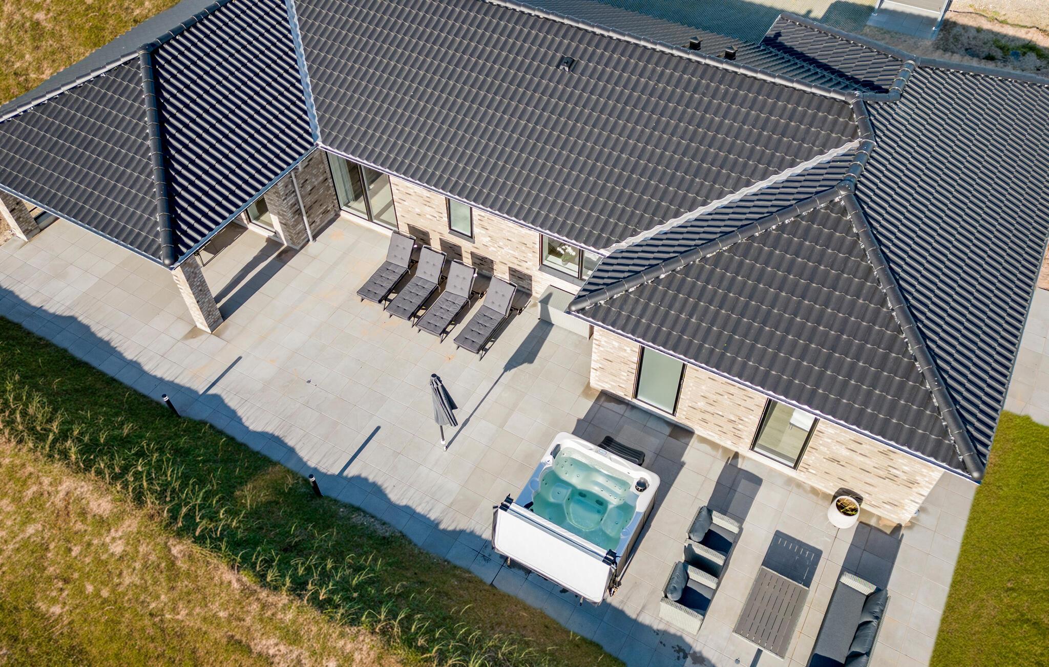 Træd ud på den rummelige sydvendte terrasse og afslut dagen i spabadet. Nyd de komfortable havemøbler og liggestole til en hvilestund eller spis morgenmad i det overdækkede område. Det velholdte udendørsområde lægger op til afslappende timer udendørs, mens børnene har masser af plads til at lege.