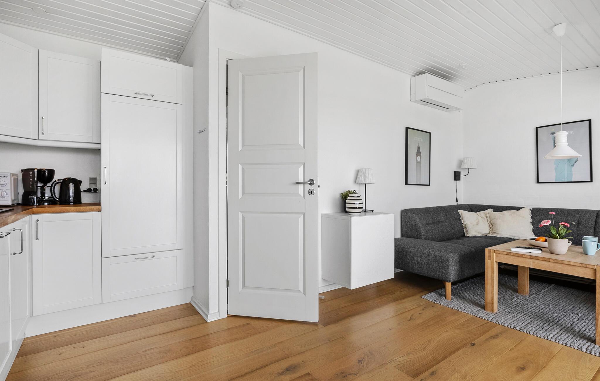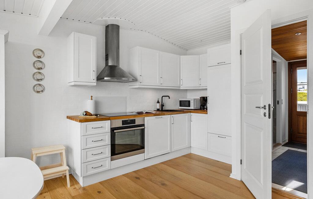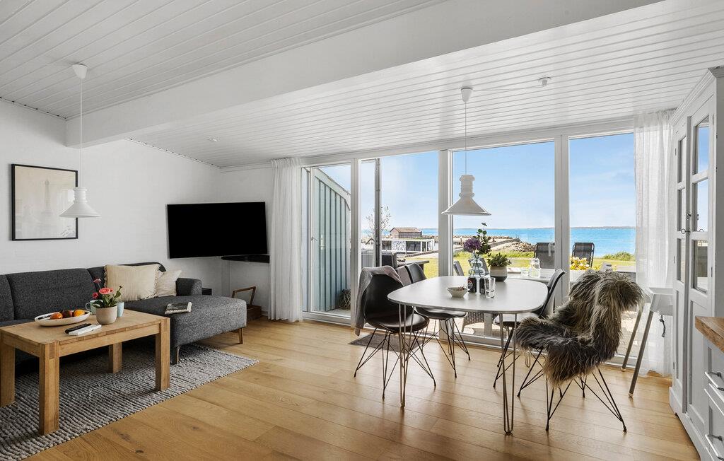 Dette velholdte feriehus venter på jer med en unik beliggenhed lige ud til havet og tilbyder de perfekte betingelser for nogle afslappende dage ved vandet. Glæd jer til den lyse opholdsstue med store vinduer, der tilbyder uforstyrret udsigt over havet og den lille havn. Gør jer komfortable i sofaen eller find sammen ved spisebordet til morgenmad med udsigt. Det lille, lyse køkken er åbent til stuen. Nyd den hjemlige atmosfære og den rene nordiske stil.
