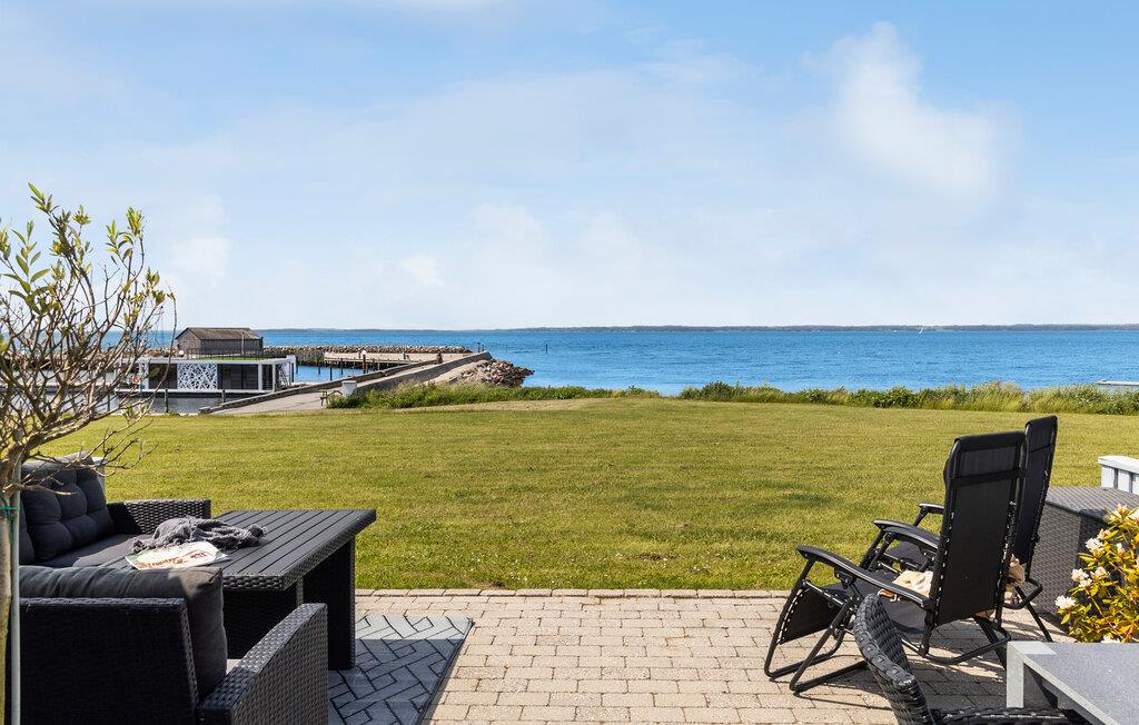 Tilbring afslappende timer på jeres private, møblerede terrasse med direkte adgang til den velplejede græsplæne ved vandet. Tag plads i lounge-sofaen og server middagen under åben himmel, altid med udsigt over vandet og solnedgangen. Lad bølgeskvulpen ledsage jer og nyd den maritime atmosfære.