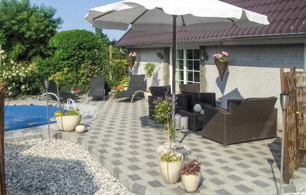 Træd udenfor og slap af på den rummelige terrasse. Solbad på liggestolene, nyd udsigten over de grønne marker eller tag en forfriskende dukkert i den lille, private pool. Brug det skyggefulde siddeområde med havemøbler til at afslutte dagen med en god bog eller en forfriskende drink.