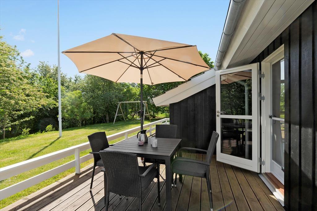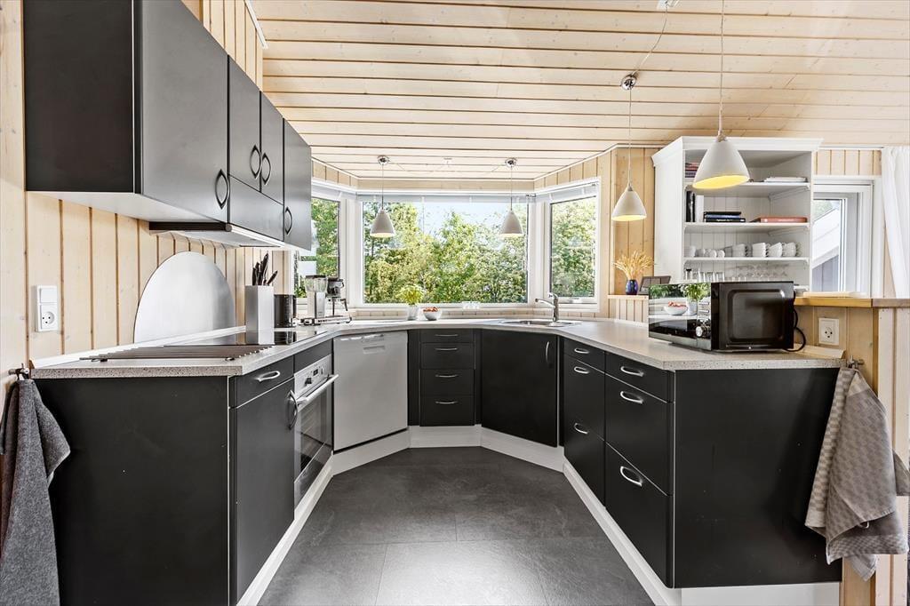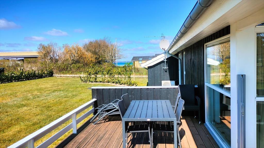 Den dejlige velplejede naturgrund med havkig giver jer de bedste rammer for en ferie i det fri. På de solrige terrasser kan I nyde jeres morgenkaffe, grille lækre feriemåltider og slappe af i de gode havemøbler. Til de yngste gæster er der både gynge og sandkasse, mens naturelskere kan glæde sig over de fantastiske vandre- og fiskemuligheder i området. Der er også tænkt på de praktiske detaljer, da feriehuset har både varmepumpe og elvarme – og mulighed for opladning af elbil.