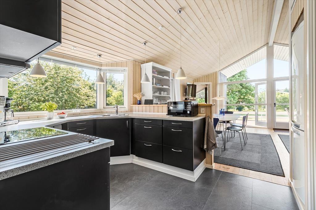 Indenfor venter en lys og rummelig stue med komfortable møbler, TV med danske og tyske kanaler samt radio med CD-afspiller. Stuen ligger i åben forbindelse med det veludstyrede køkken, hvor I finder alt, hvad I skal bruge til madlavningen, herunder induktionskomfur, varmluftsovn, opvaskemaskine og fryser. Feriehuset har tre gode soveværelser – to med dobbeltsenge og et med to enkeltsenge, der kan skubbes sammen. Der er desuden to moderne badeværelser med bruser og gulvvarme, og det ene har også vaskemaskine, tørretumbler og en skøn sauna til ekstra afslapning.