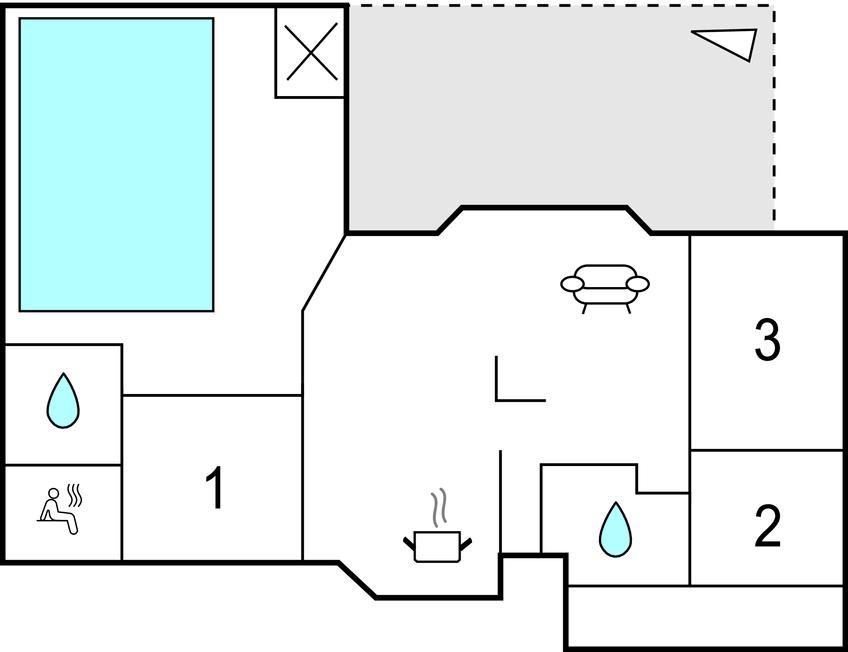 Soveværelse (nr. 3) - 1 Soveplads. (Enkeltseng(e)). 2 Sovepladser. (Dobbeltseng(e)).