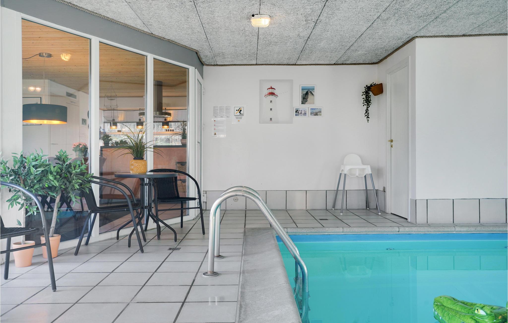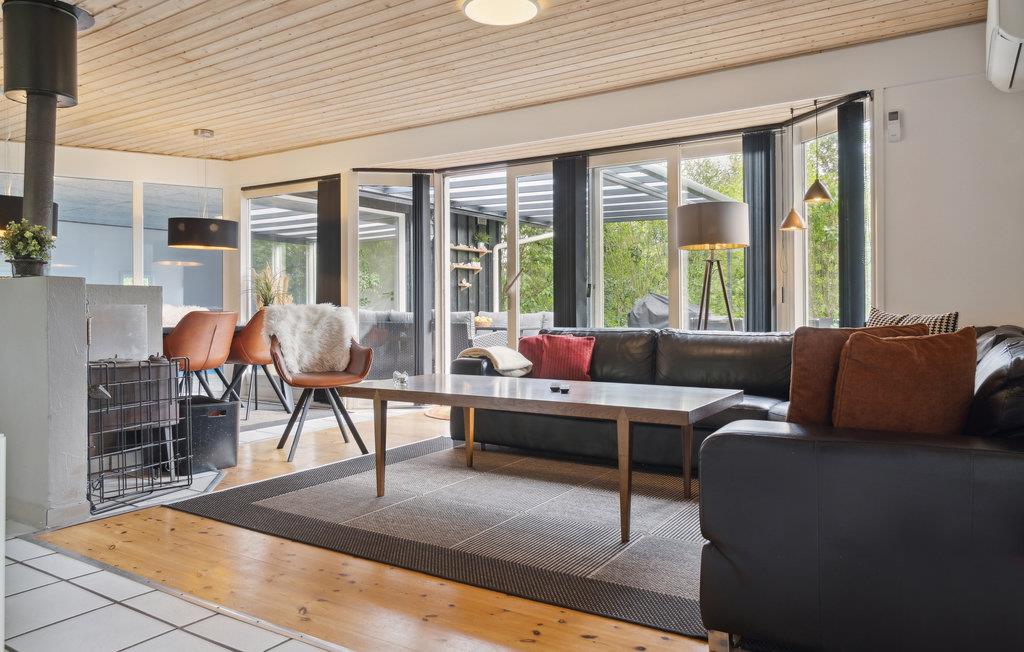 Meget velholdt og godt indrettet sommerhus af træ, som ligger i et skønt kuperet område, der indbyder til mange udendørs aktiviteter som traveture, fiskeri, surfing og badning. Desuden er der kort afstand til en hyggelig lystbådehavn, indkøbsmuligheder og flere større byer. Huset er lyst og venligt indrettet med bl.a. en stor poolafdeling, hvor I kan boltre jer i den 20 m2 store pool, der opvarmes med en varmepumpe. Et stort vinduesparti mellem stuen og poolrummet giver en masse lys og sikrer, at der nemt kan holdes øje med de badende børn. Opholdsstuen, der naturligvis har både brændeovn og fladskærms-tv, er åbent forbundet med det velindrettede køkken, som byder på alle hårde hvidevarer.