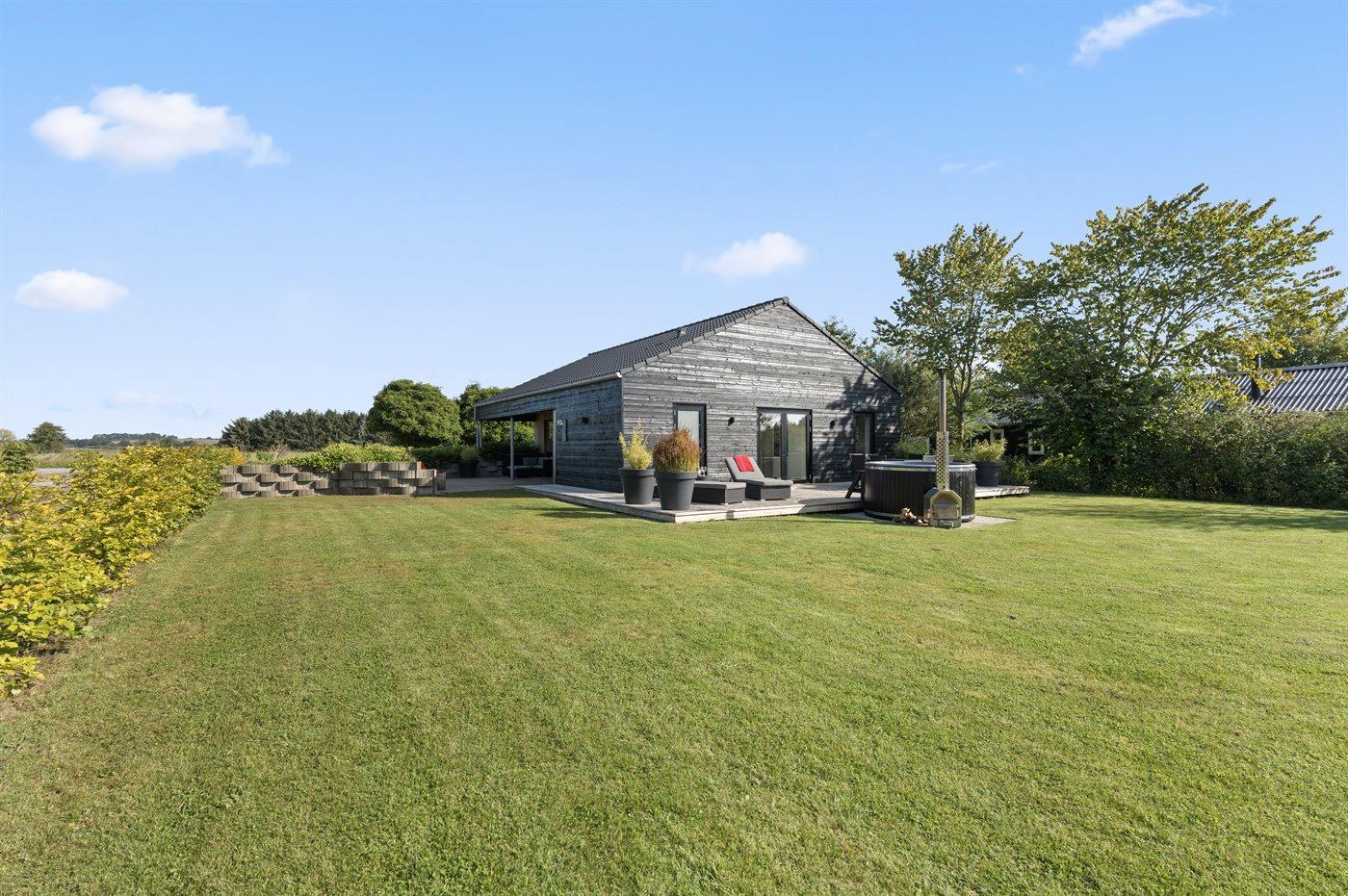 Flot og totalrenoveret sommerhus med vildmarkskar og tæt på Diernæs strand.