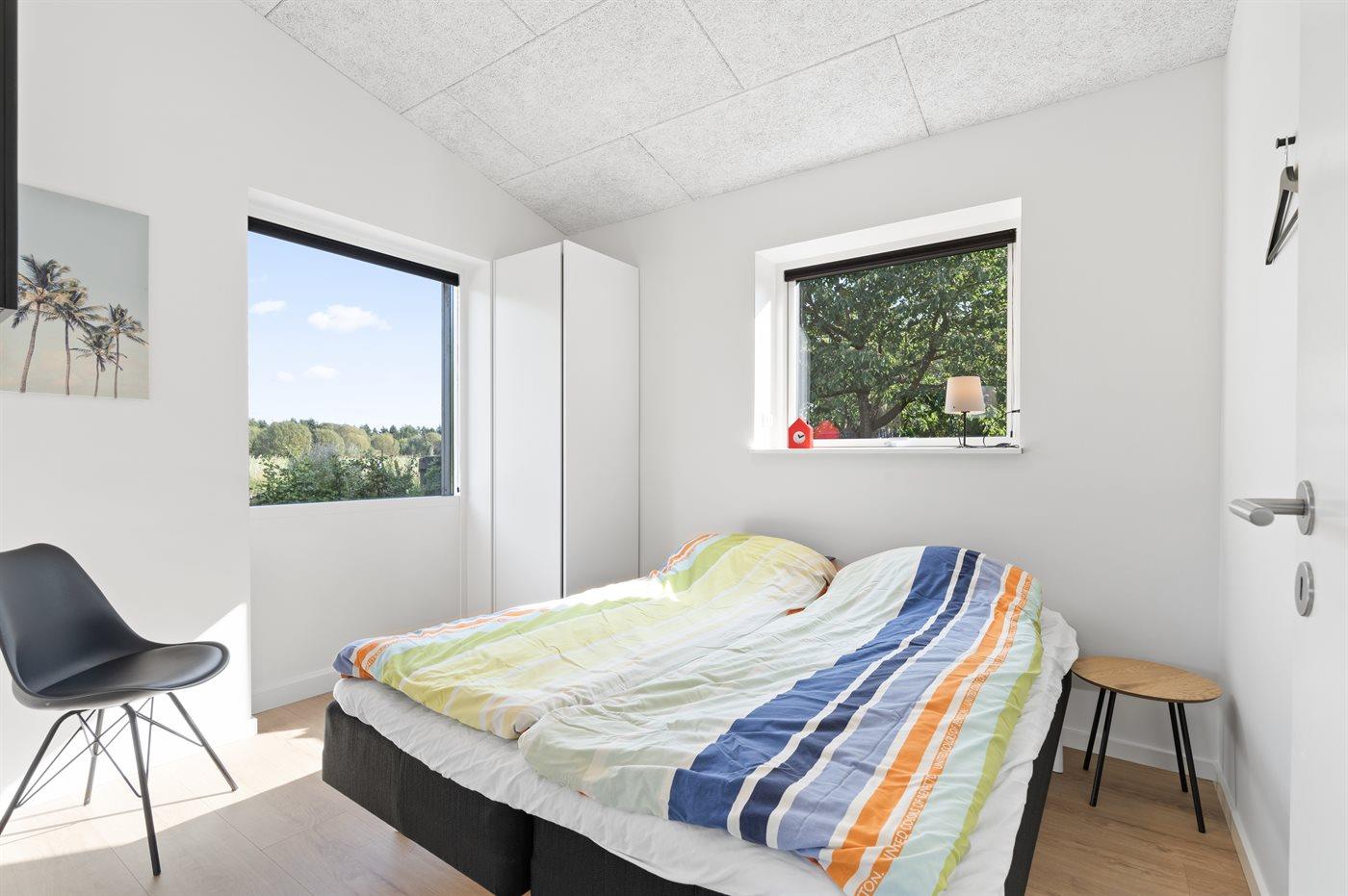 Der er i alt 4 soveværelser. Sovepladserne fordeler sig på: 8 sovepladser i dobbeltsenge. Derudover er der 1 stk. barneseng.