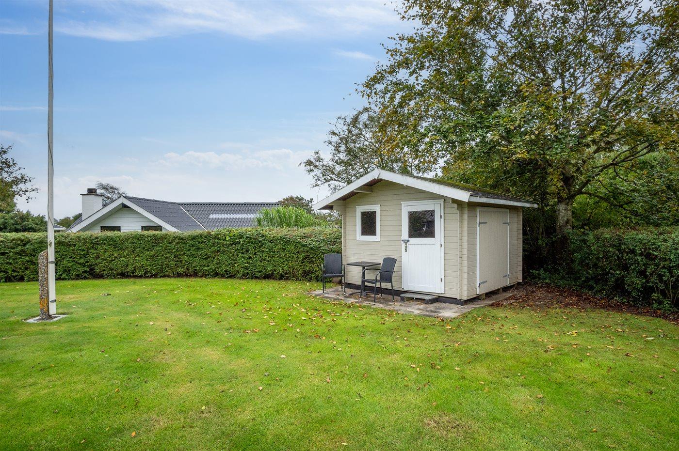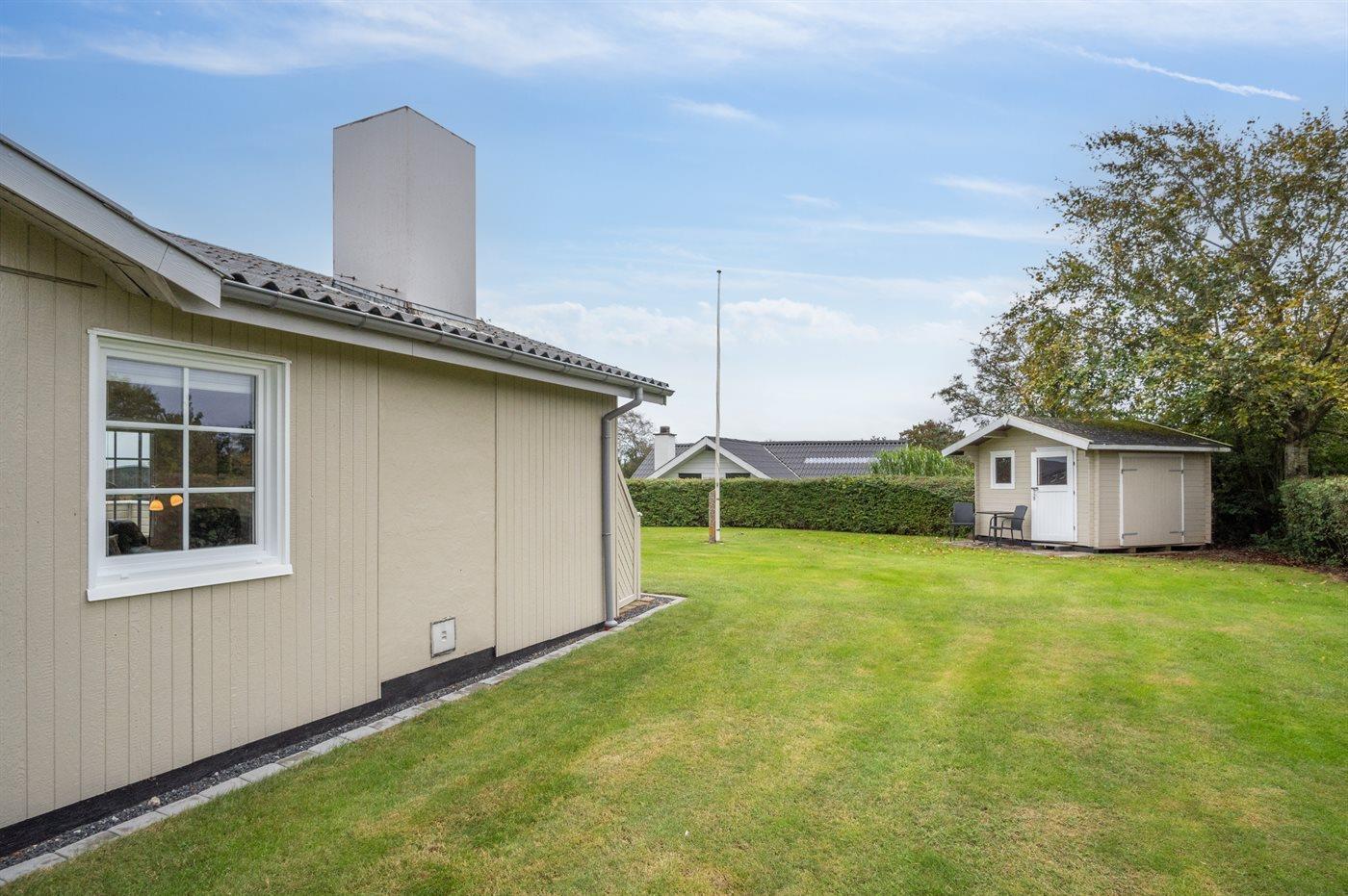 Ferieboligen er beliggende på en 982 m² stor havegrund. Der er 300 m til havet. Nærmeste forretning er beliggende i en afstand af 250 m. Til ferieboligen hører 30 m² terrasseareal. Desuden er der 8 m² overdækket terrasse. Heraf i alt 35 m² lukket terrasse. Der er redskabsrum. Sandkasse. Der er carport til rådighed.