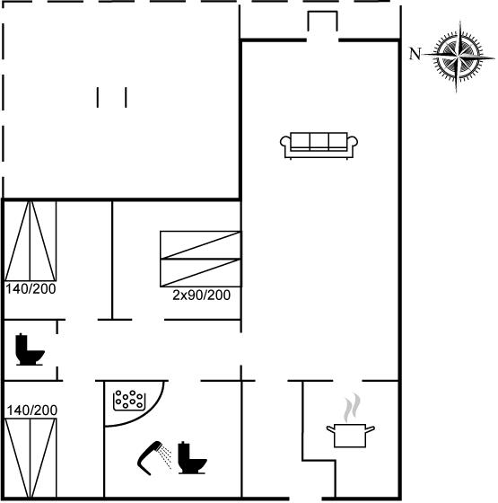 Der er i alt 3 soveværelser. Sovepladserne fordeler sig på: 6 sovepladser i dobbeltsenge. Derudover er der 1 stk. barneseng.