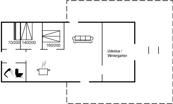 Der er i alt 3 soveværelser. Sovepladserne fordeler sig på: 4 sovepladser i dobbeltsenge. 2 sovepladser i køjeseng. Derudover er der 1 stk. barneseng.