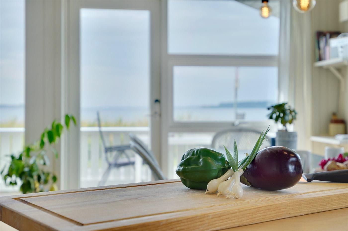 Skønt, lille og velholdt sommerhus med panoramaudsigt over vandet fra både huset og terrassen. Huset ligger i første række til vandet på en mindre grund, hvor der på den anden side af vejen er direkte adgang til stranden.
