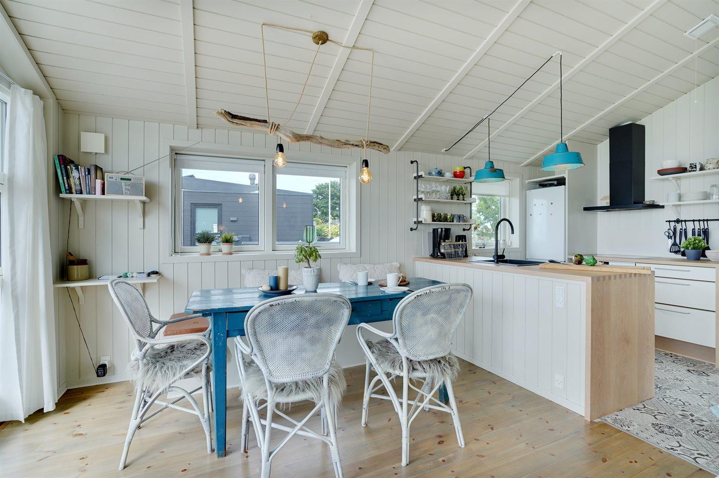 Køkkenet er udstyret med 1 køleskab. Der er 4 keramiske kogeplader, varmluftovn samt opvaskemaskine.