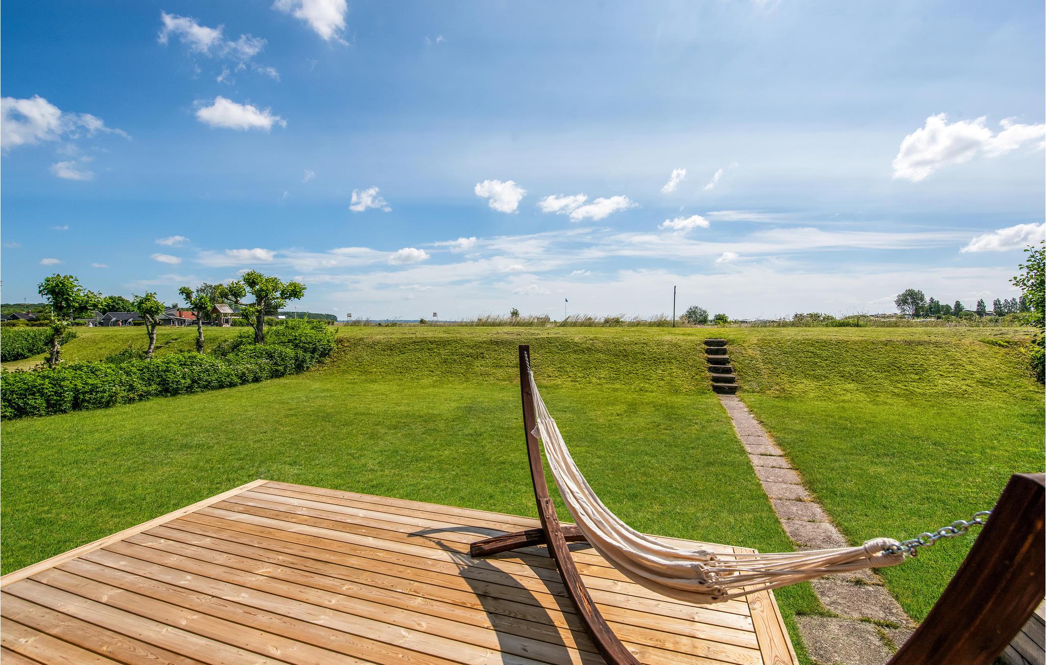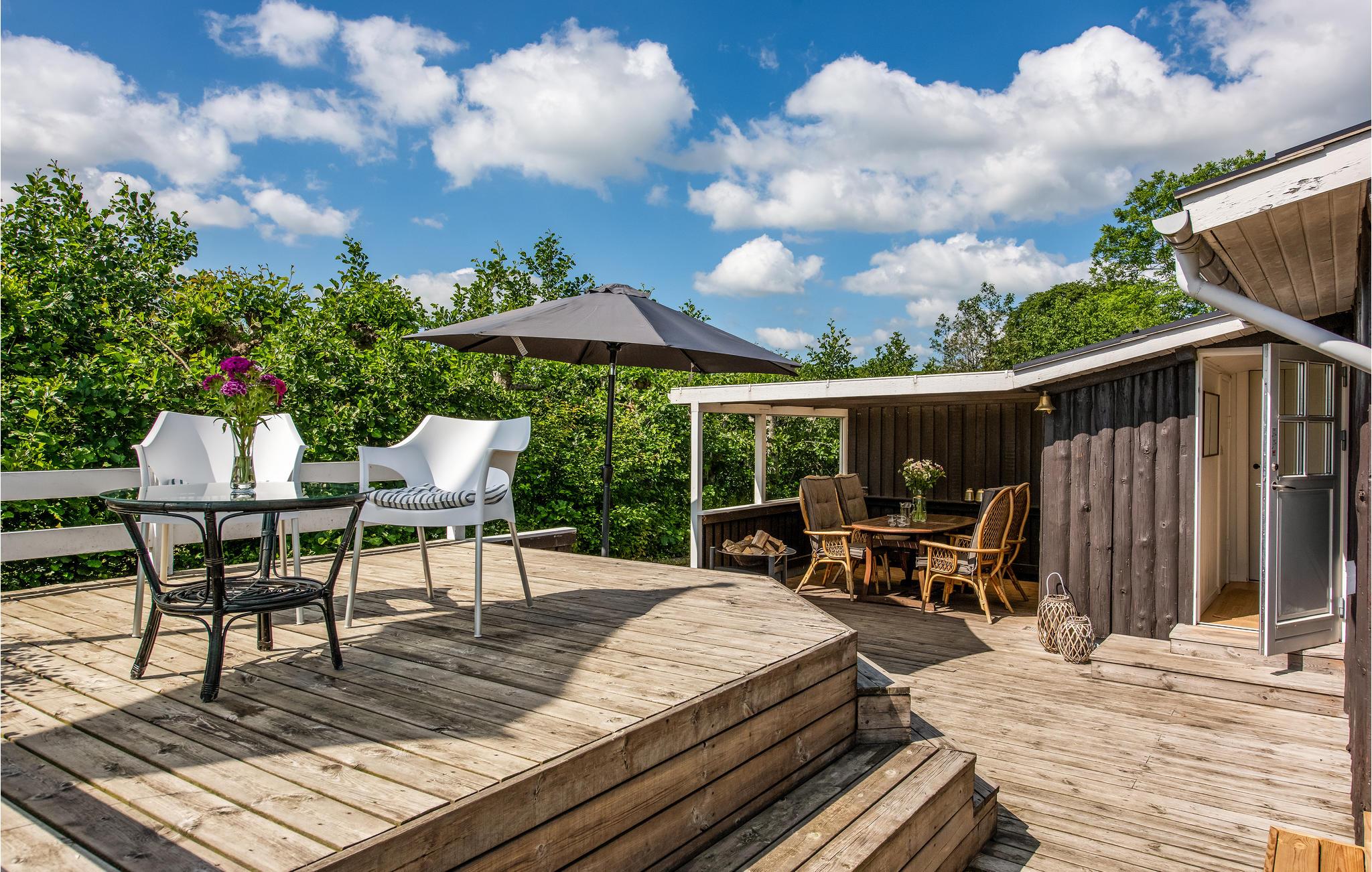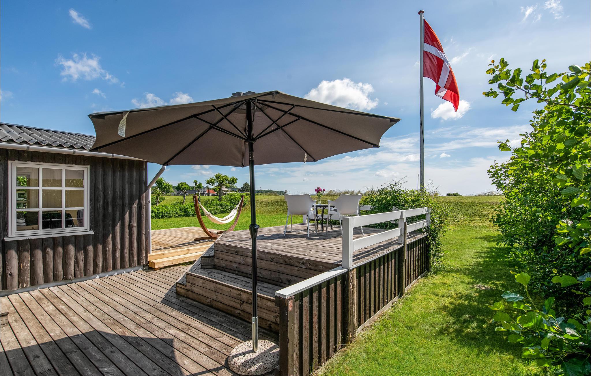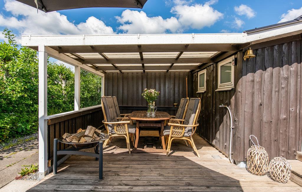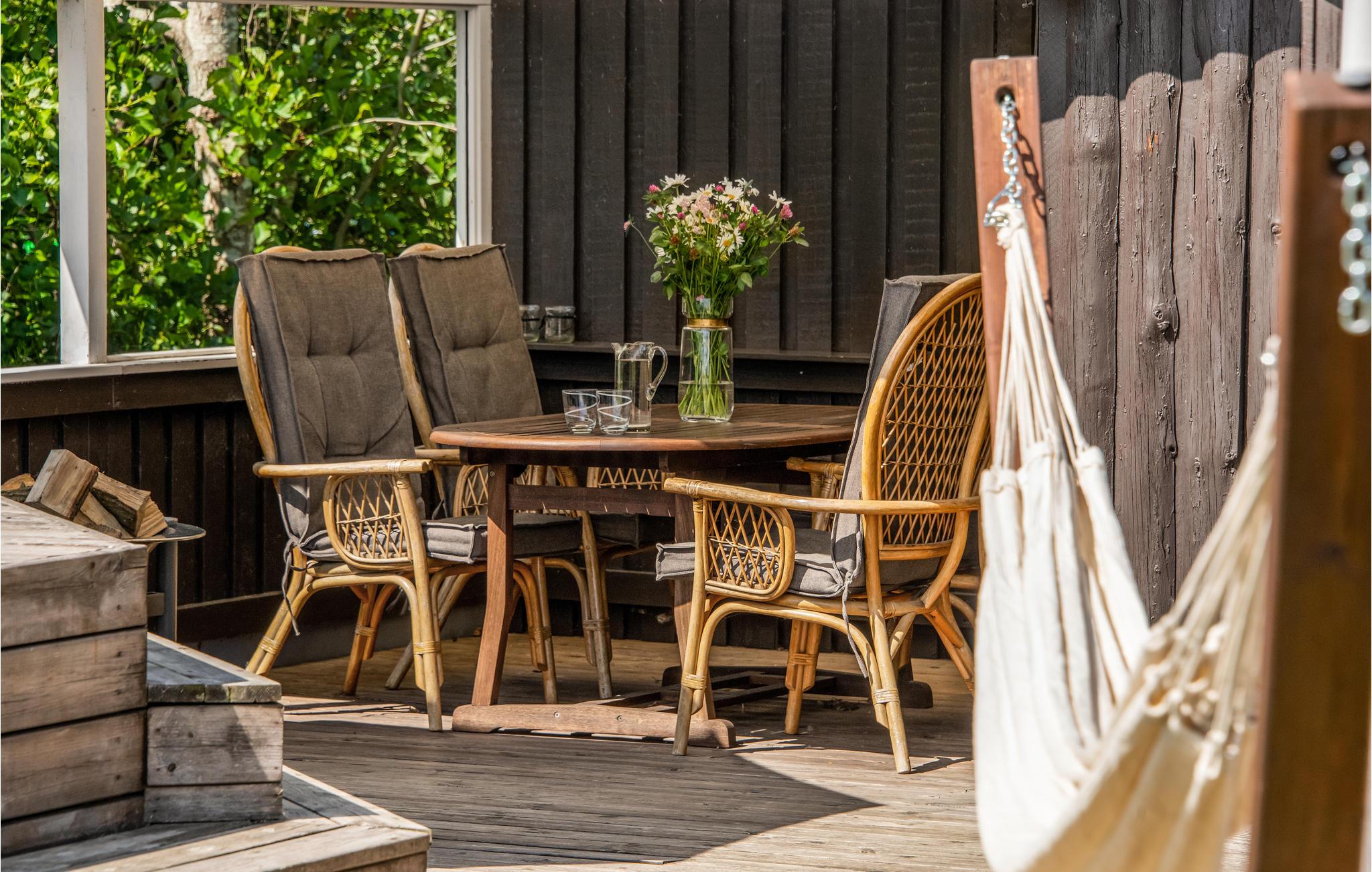 Udenfor er alt designet, så I kan tilbringe mange behagelige timer udendørs. Fodboldmål, volleyballnet og badmintonketcher giver underholdning, I kan trylle lækre retter på grillen, og selvfølgelig er der også komfortable havemøbler, hvor I kan nyde solen på terrassen. Der er en legeplads kun få skridt fra huset, og stranden ligger kun 300 meter væk.