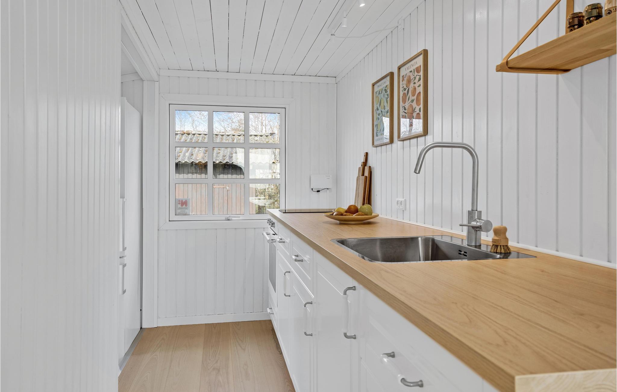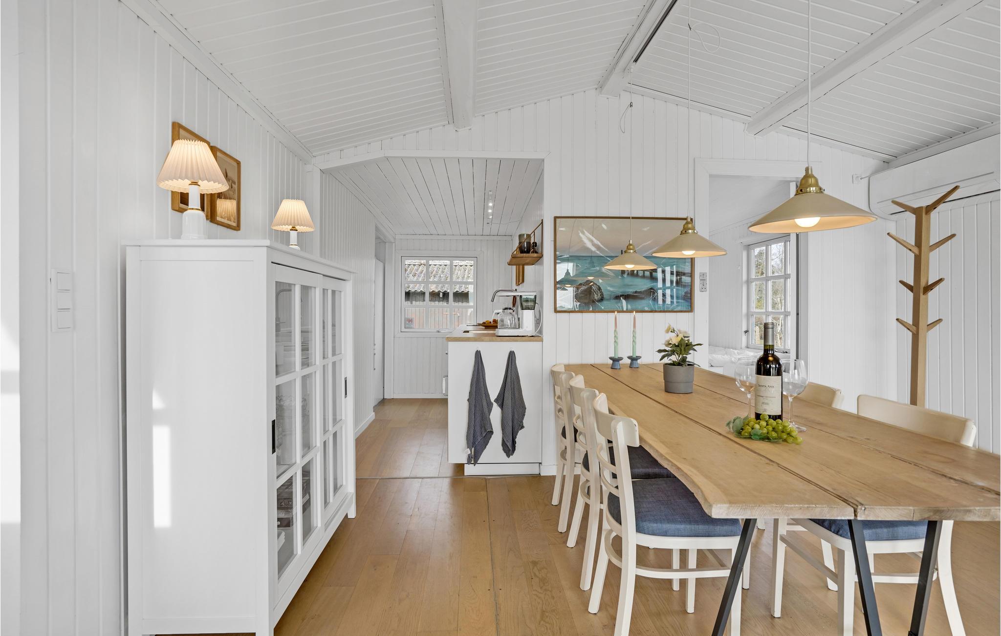 Velkommen til dette smukke sommerhus med mange aktiviteter og attraktive udendørs arealer. Med 2 soveværelser kan det rumme 4 personer og er ideelt til en afslappende familieferie. Efter en lang, aktiv dag kan I gøre jer komfortable ved brændeovnen og lytte til de knitrende flammer, mens I ser en film eller spiller et spil sammen.