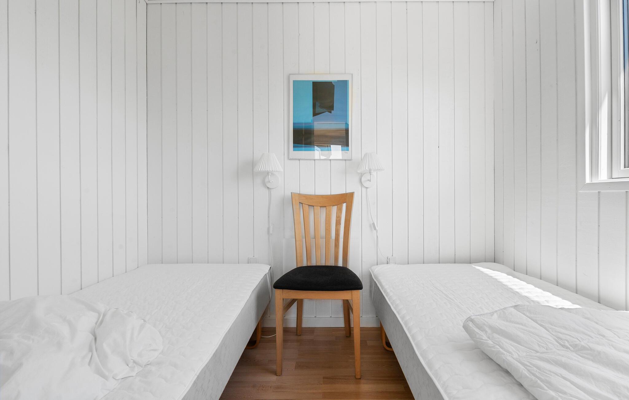 Dette hus udstråler en indbydende og afslappet atmosfære. Lyse trælofter og store vinduer skaber en åben, luftig atmosfære med masser af naturligt lys. Det store træbord lægger op til at spille spil sammen, mens den komfortable lædersofa og lænestolen er ideelle til afslappende læsning. Fra stuen kan I nyde udsigten over haven.