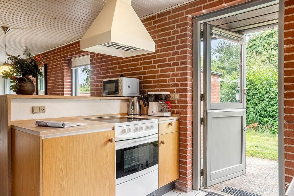 Den åbne planløsning skaber naturlige opholdsrum, hvor familien kan samles til afslapning, spil og hyggelige stunder. Køkkenet ligger i direkte forbindelse med spiseafdelingen, hvilket gør det nemt at lave mad sammen. Huset rummer to soveværelser – det ene med en dobbeltseng, det andet med en køjeseng – samt en sovesofa i stuen.