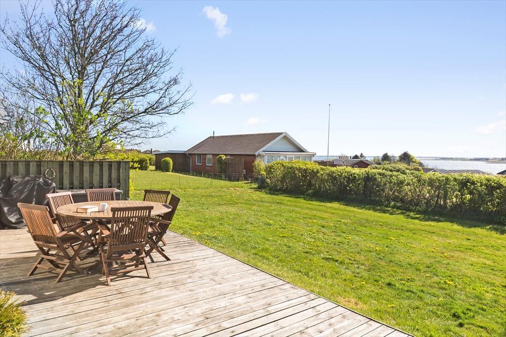 Sommerhuset ligger på en plænegrund, hvor der er gode muligheder for leg og boldspil. Fra opholdsrummet er der direkte adgang til en meget stor terrasse, hvor du naturligvis har grill, parasol, havemøbler og liggestole til rådighed.