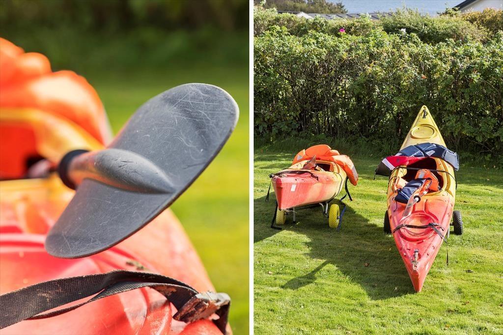 Der er 2 kajakker, som må benyttes, men det er helt på eget ansvar. En del redningsveste forefindes.